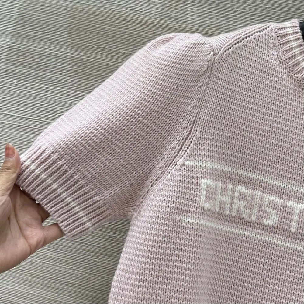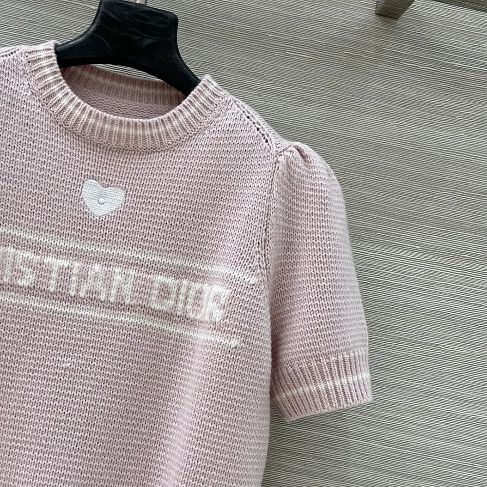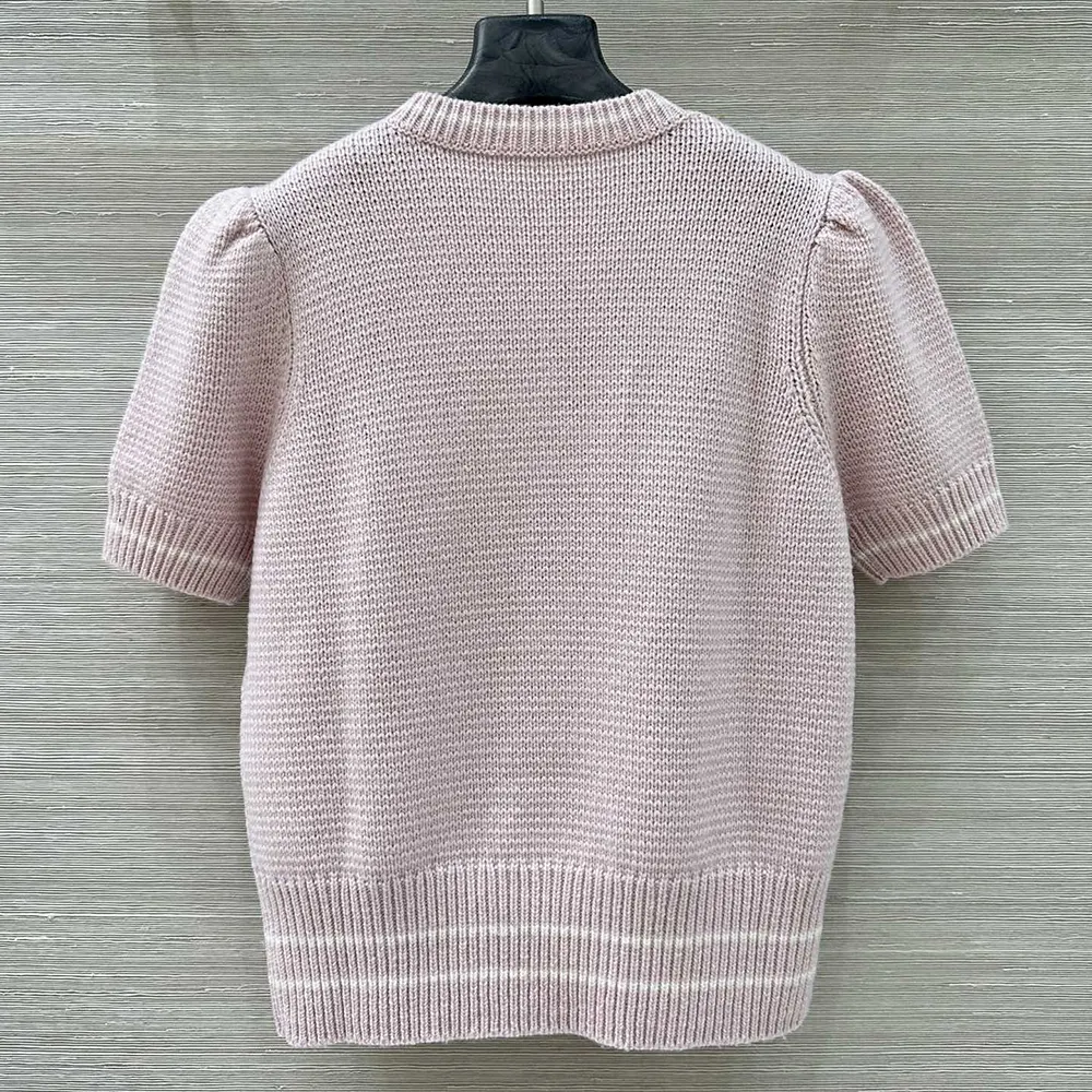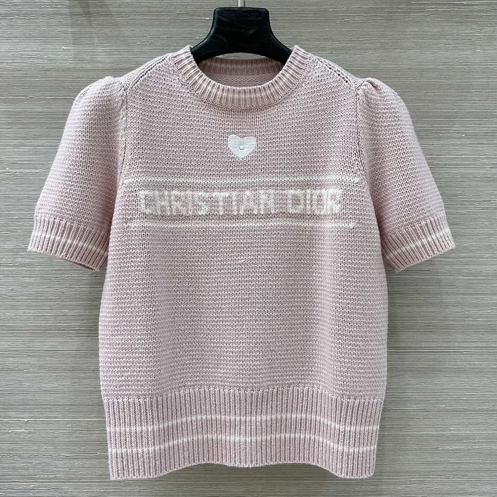 Dior Women Short-Sleeved Sweater Pink Virgin Wool-Cashmere Knit