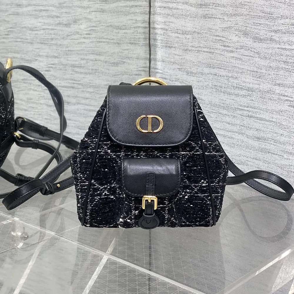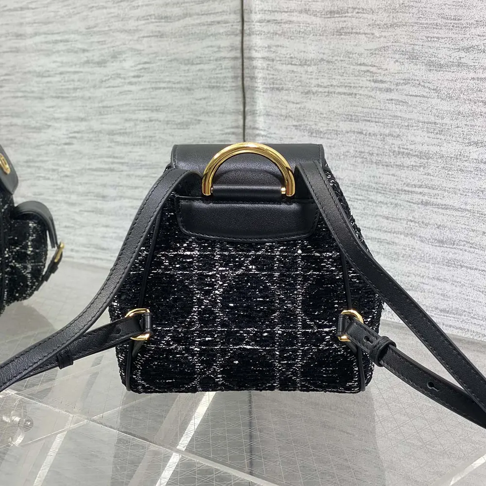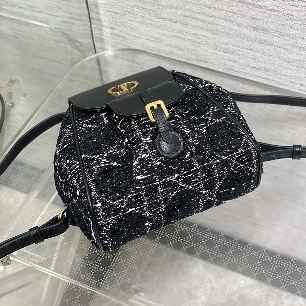 Dior Women Small Dior Caro Backpack Black Tweed with White Cannage Motif