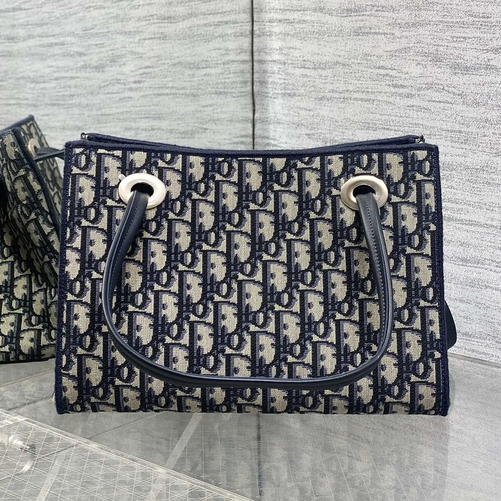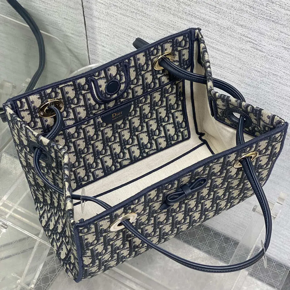 Dior Women Small Shopping Bag Blue Dior Oblique Jacquard M1410OTZQ