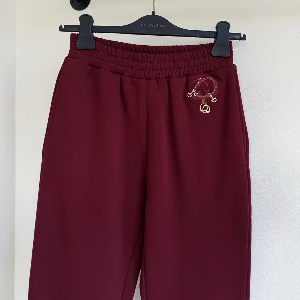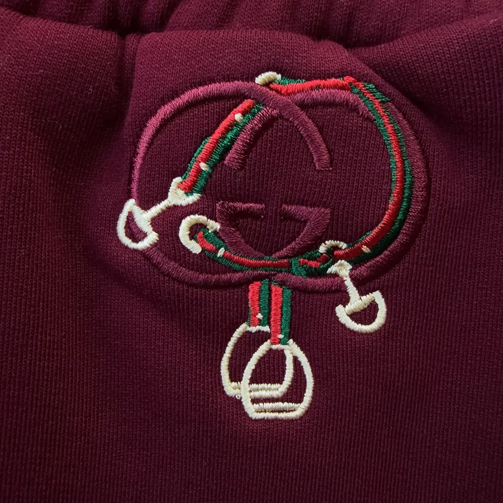 - Crafted from cotton jersey, these leisure pants are defined by a Web Interlocking G and stirrup embroidery.