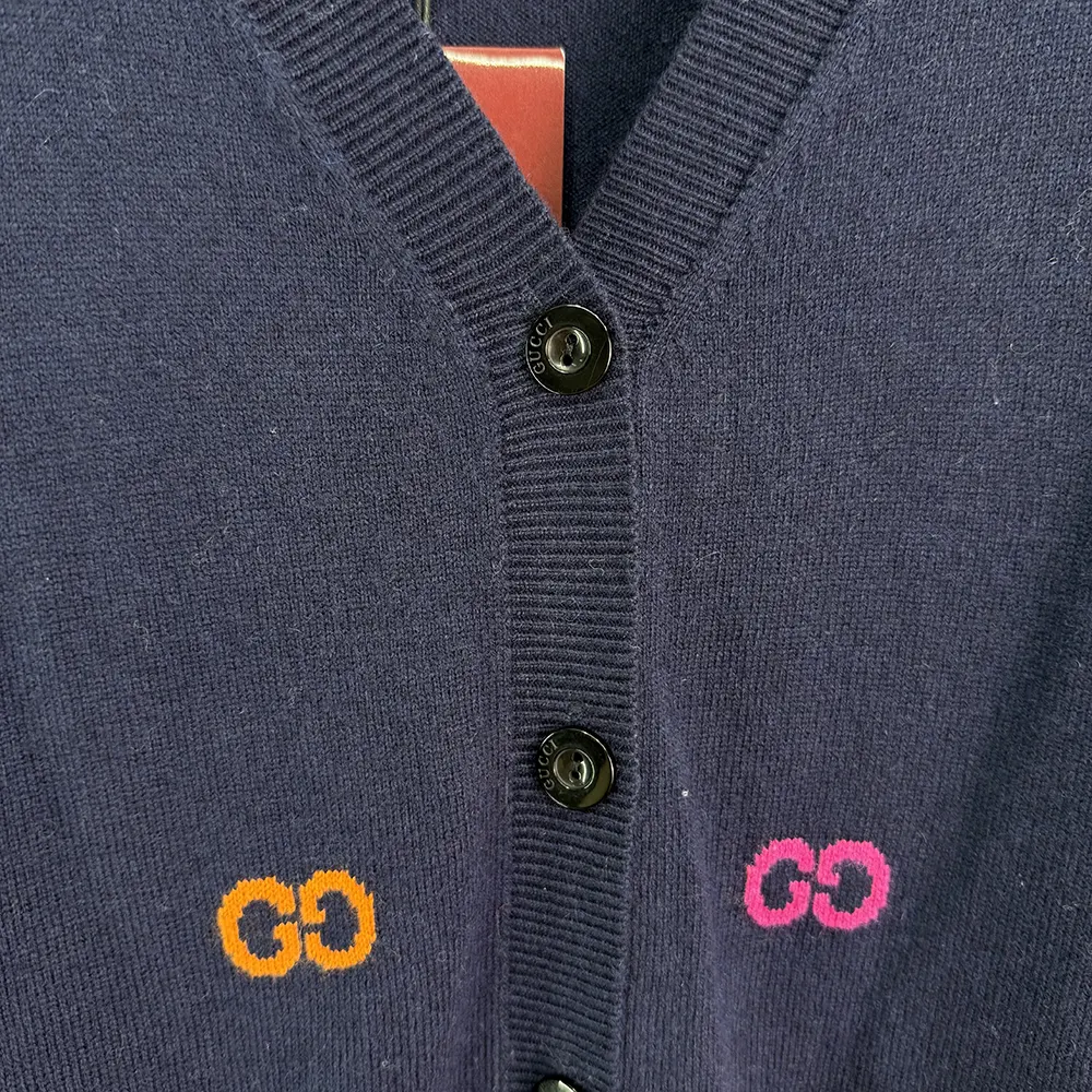 - this cardigan is defined by a multicolored GG intarsia.