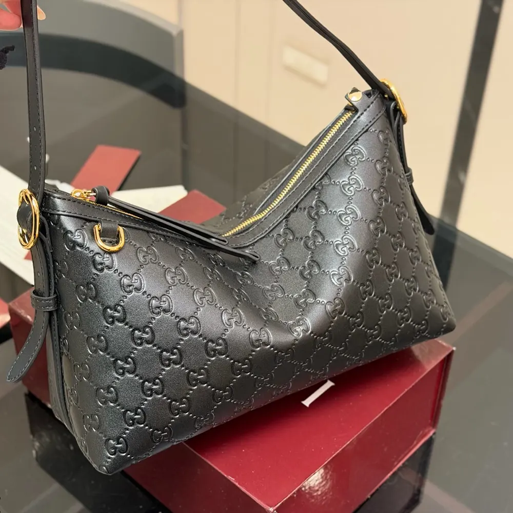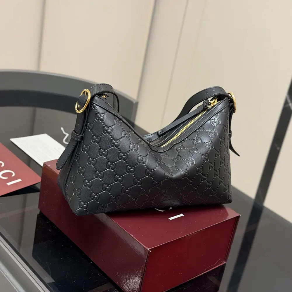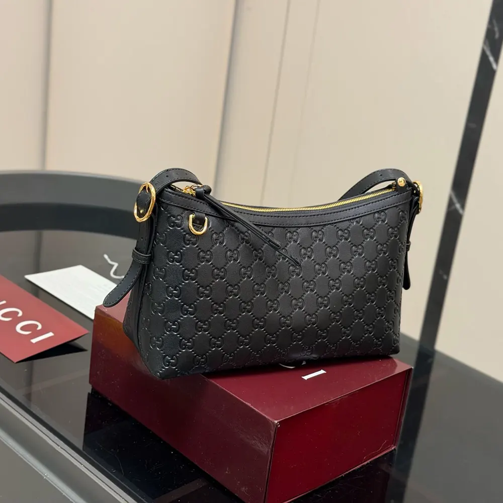 - Black GG embossed leather