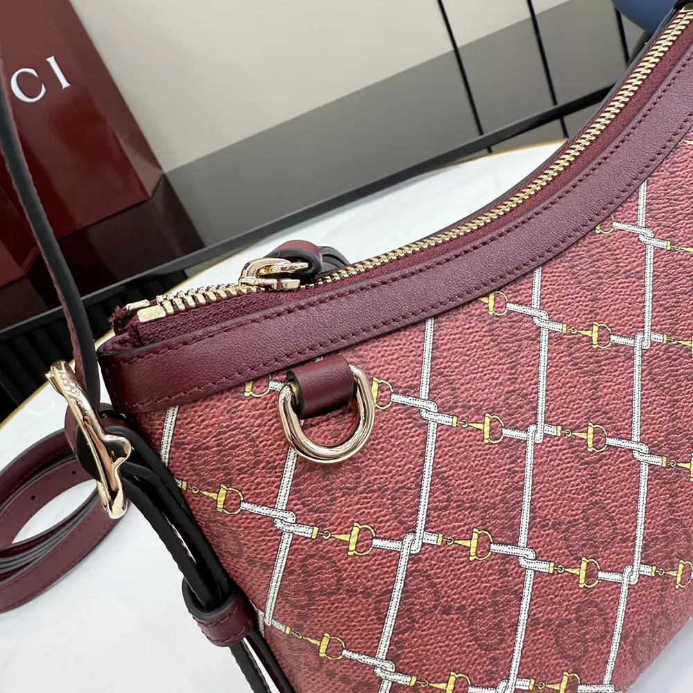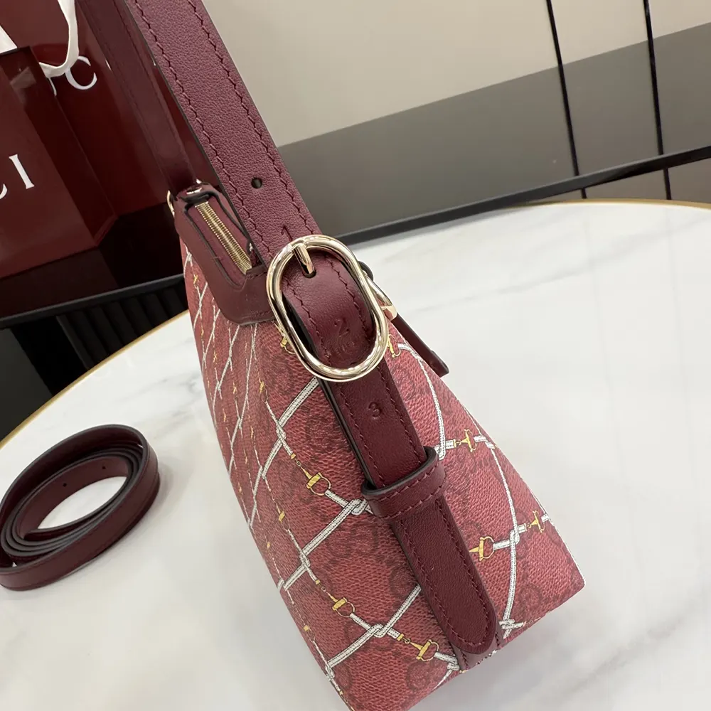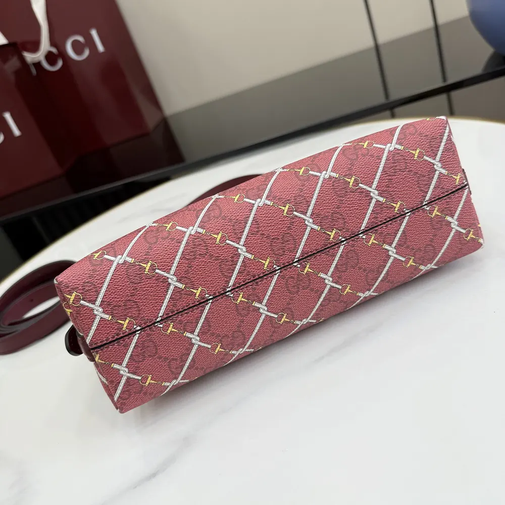- Highlighting a stirrup motif over the GG Monogram coated fabric, this shoulder bag can be worn crossbody with the extender strap for a touch of versatility.