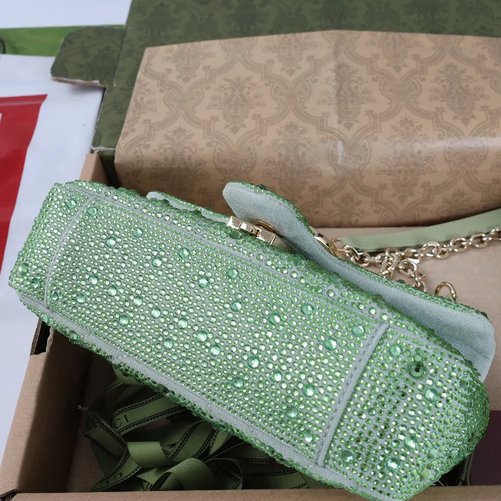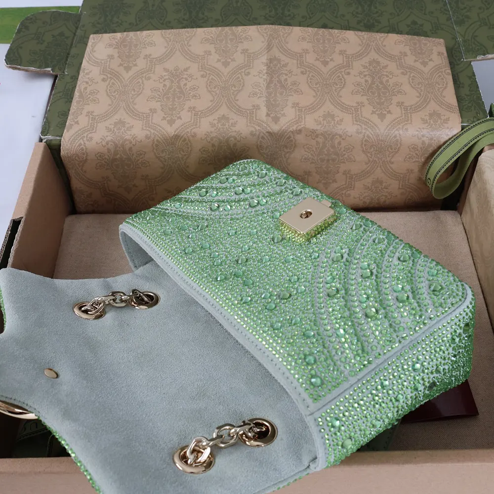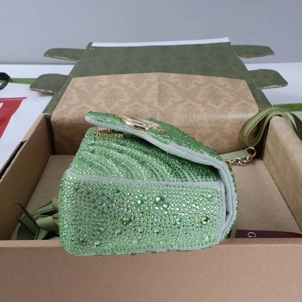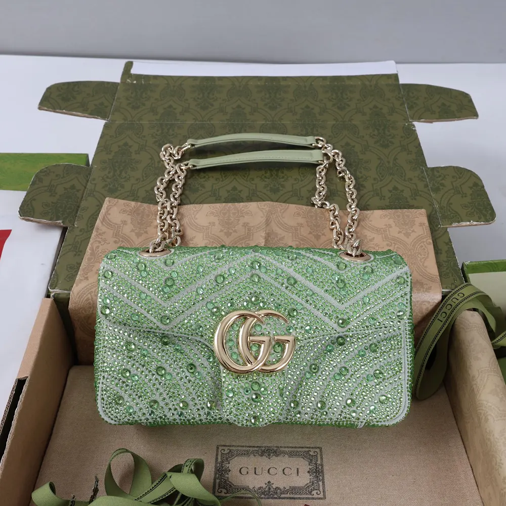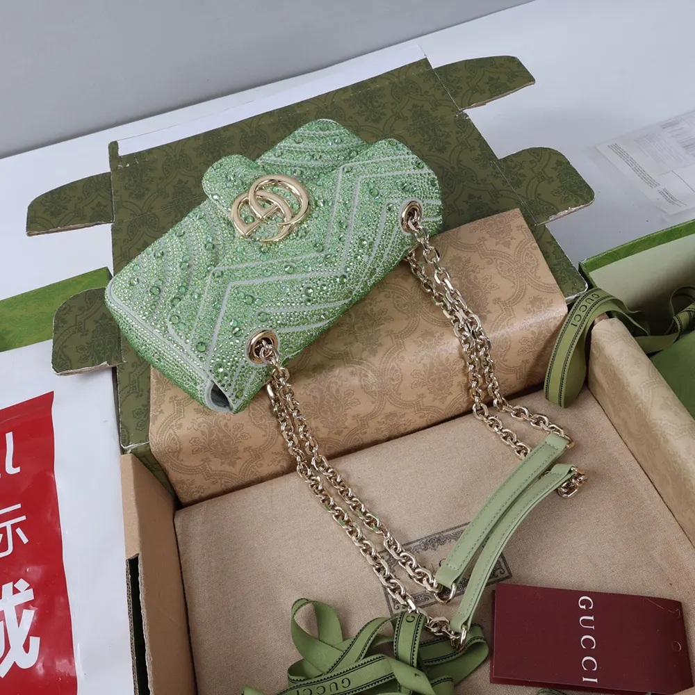 Gucci Women GG Marmont Crystals Small Shoulder Bag-Green 837280AAFTR