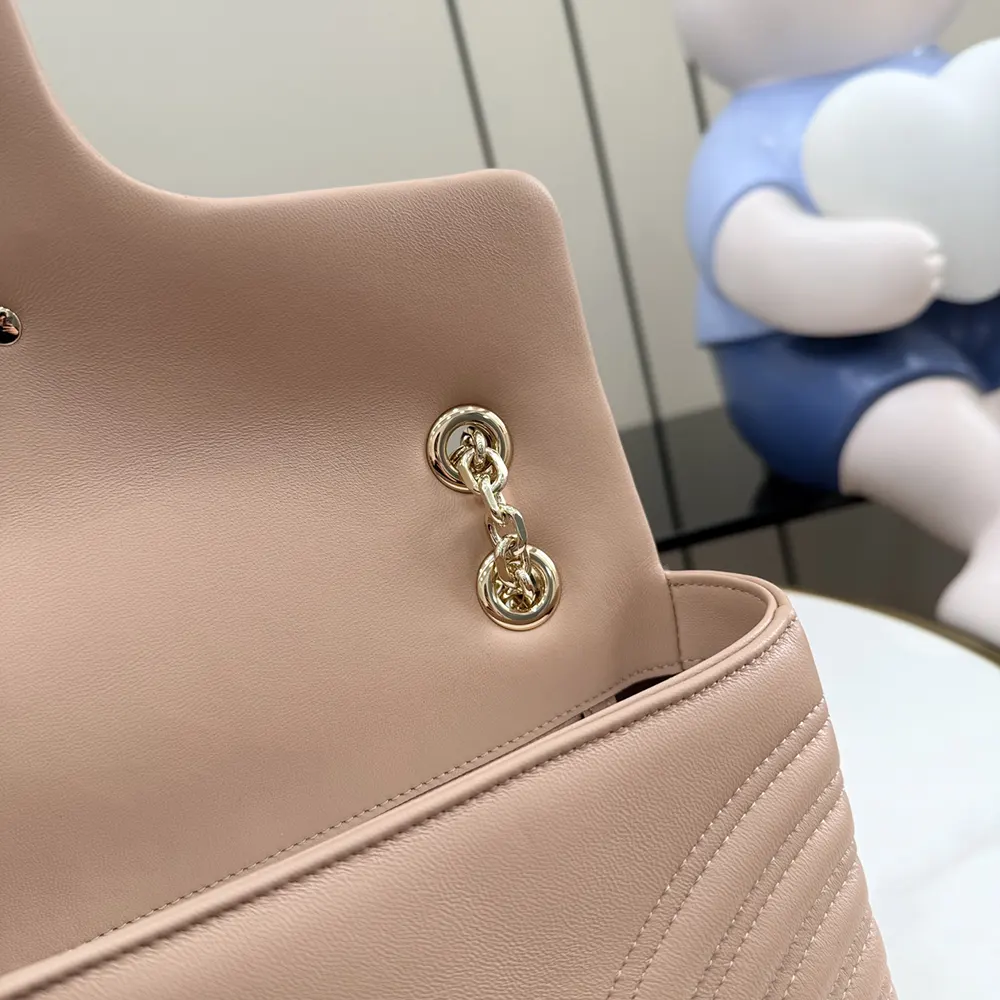 - Pink beige matelassé chevron nappa leather
