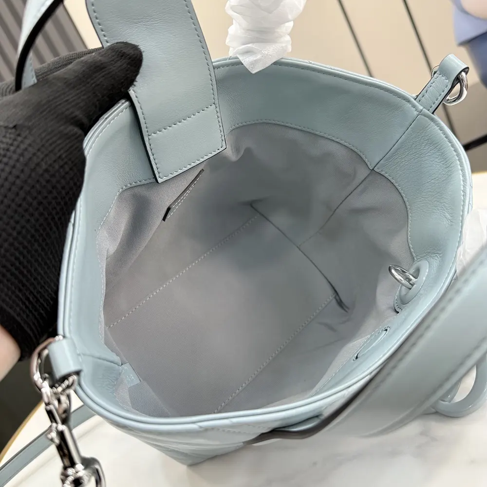 - Icy blue matelassé chevron nappa leather