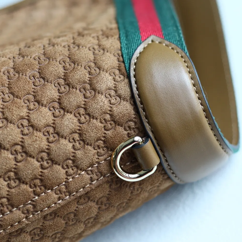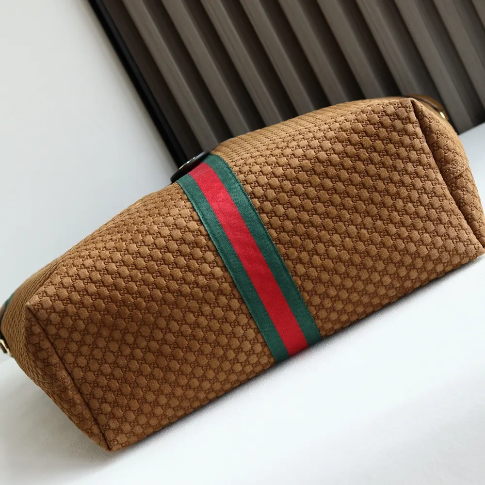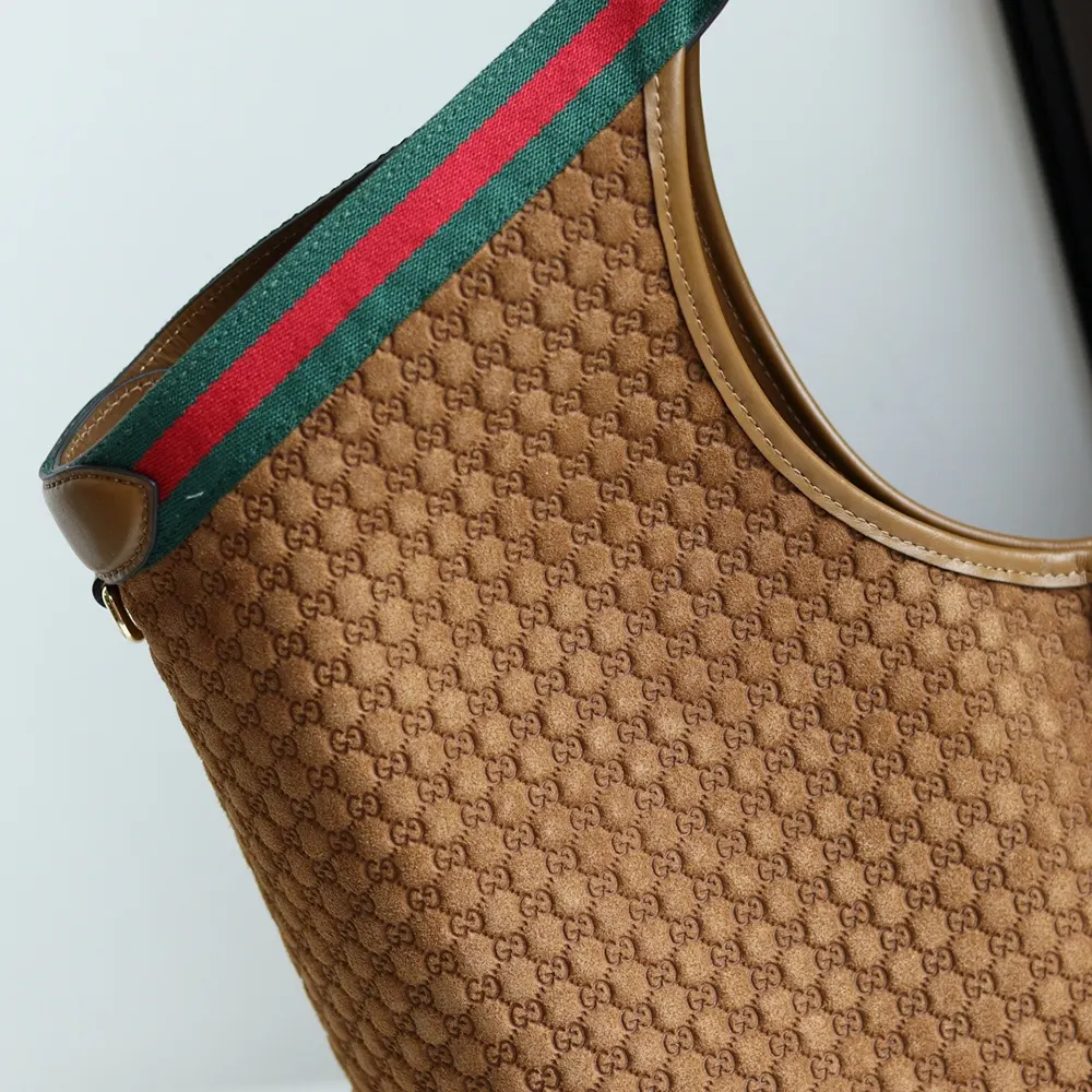 - Crafted in GG suede, this capacious bag features the Web trim, and is complete with a detachable pouch.