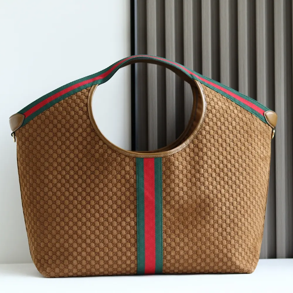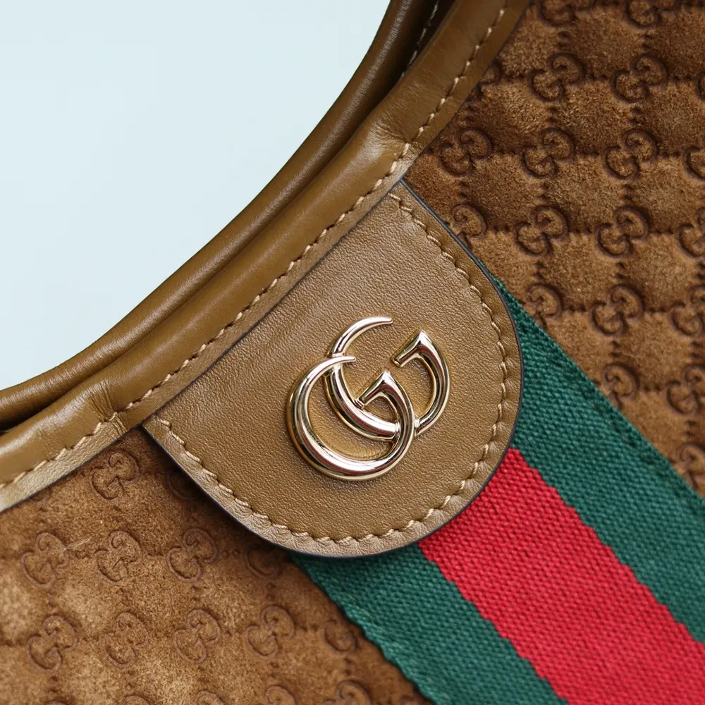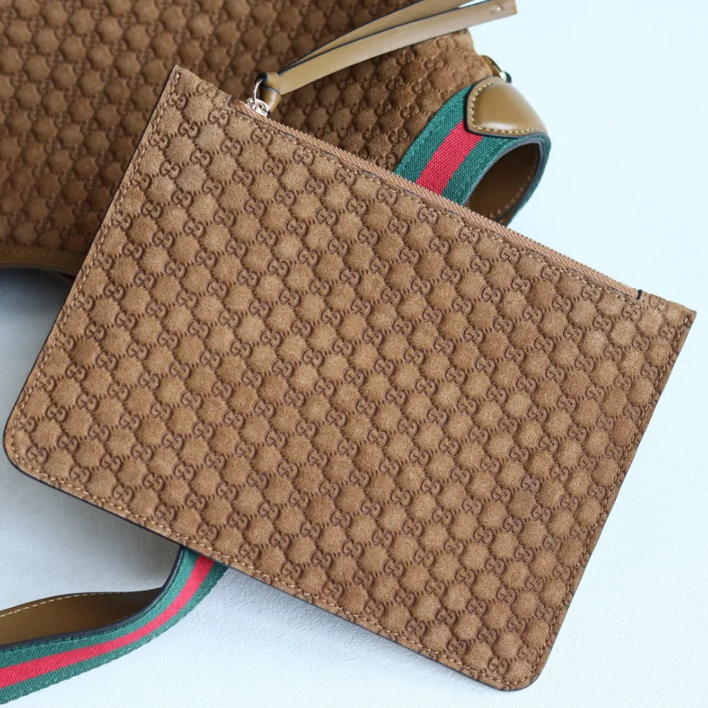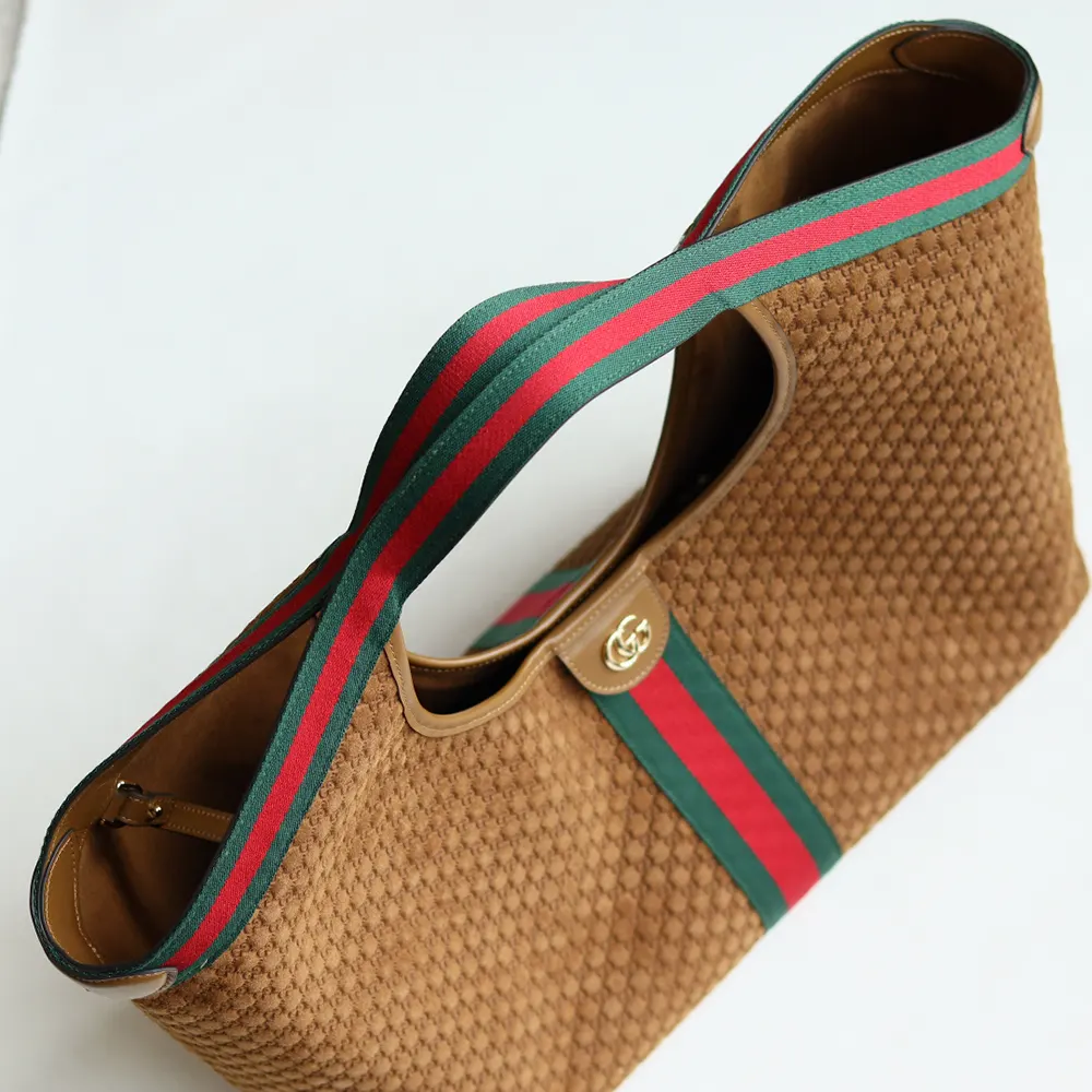 - Crafted in GG suede, this capacious bag features the Web trim, and is complete with a detachable pouch.