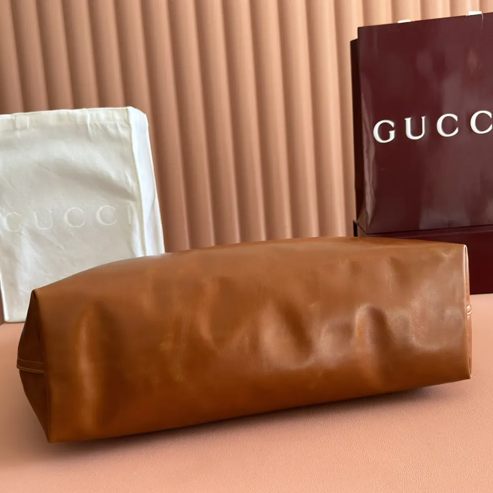 - Crafted in soft glossy leather, this capacious bag features the Web trim, and is complete with a detachable pouch.