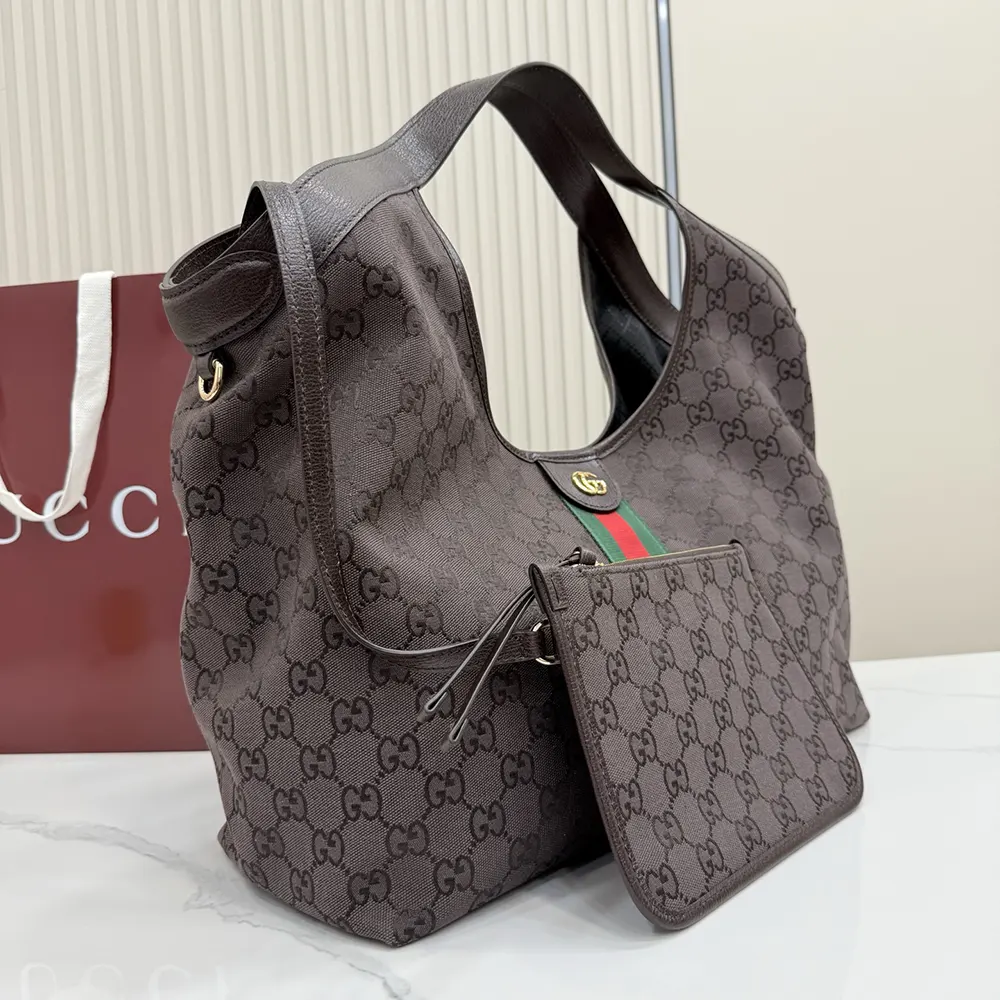 - Crafted from GG canvas in a new shade, the style reveals a new lining with Diamante motif taken from the archive.