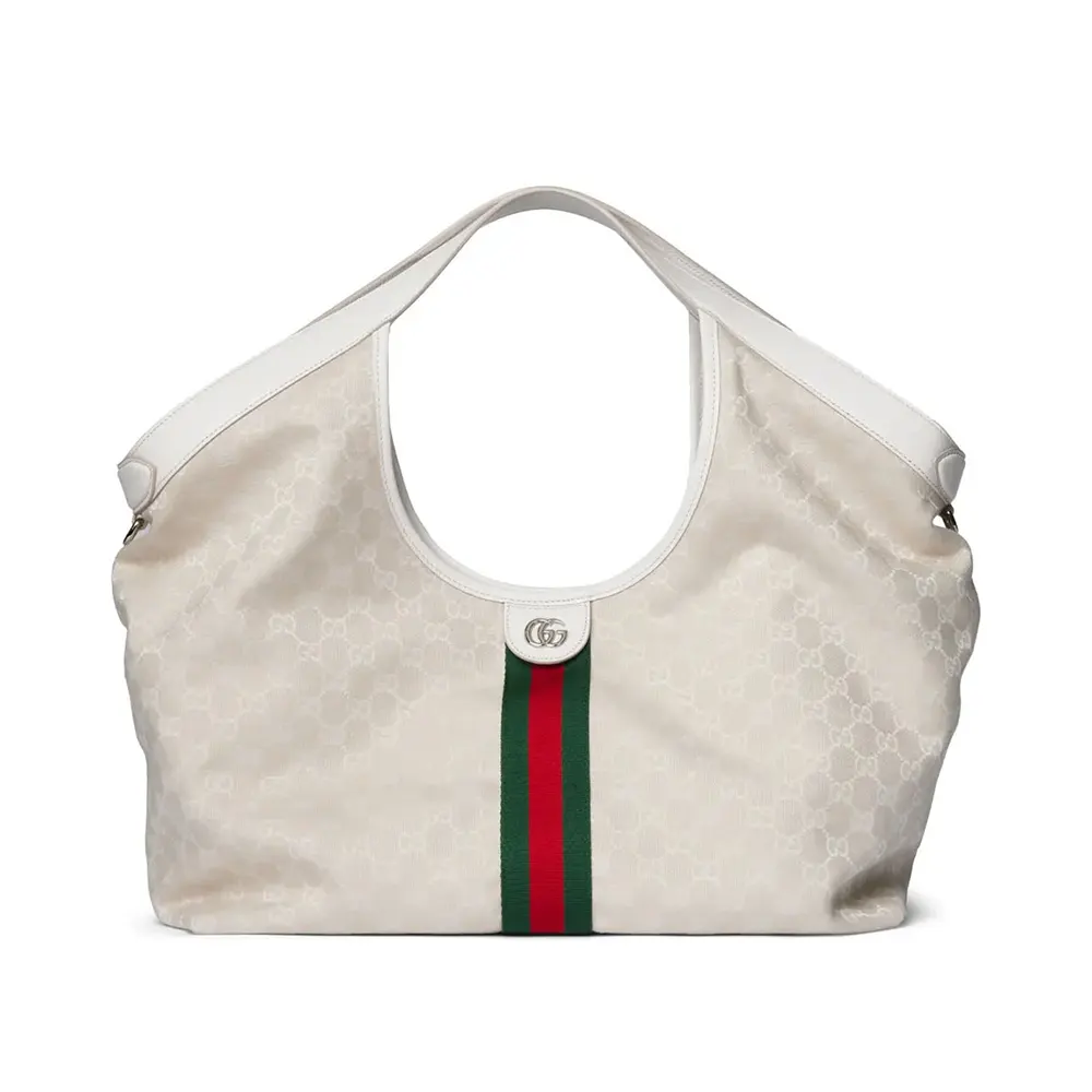 - Gucci Giglio’s versatile yet elegant tote-inspired shape makes it an essential companion. This style is crafted from GG canvas, complete with a leather trim for refinement.