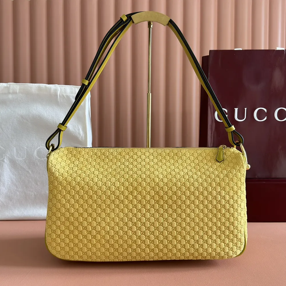 - Mustard yellow embossed GG suede