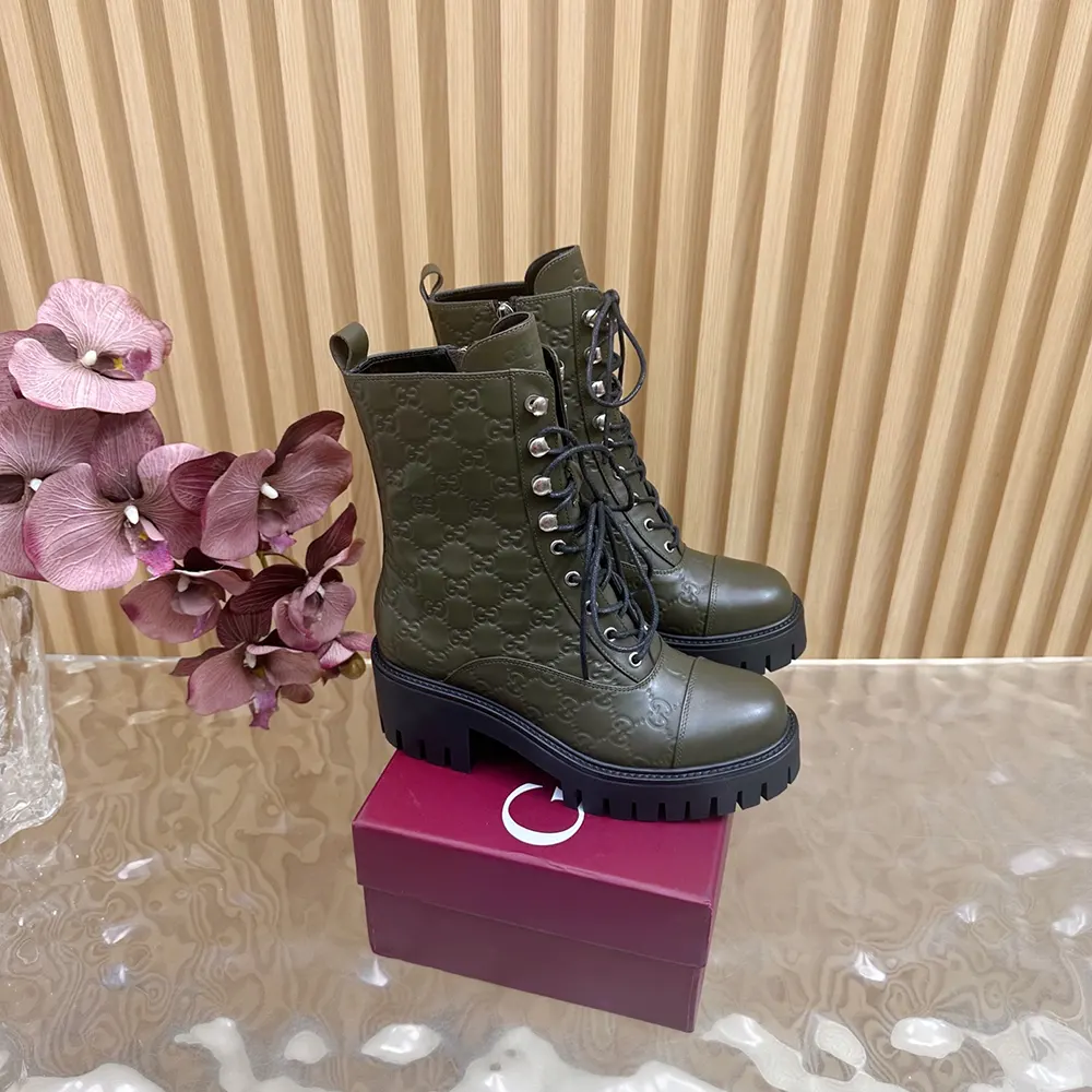 Be the first to review “Gucci Women Lace-Up Ankle Boot With GG Dark Green GG Leather 840739” Cancel reply