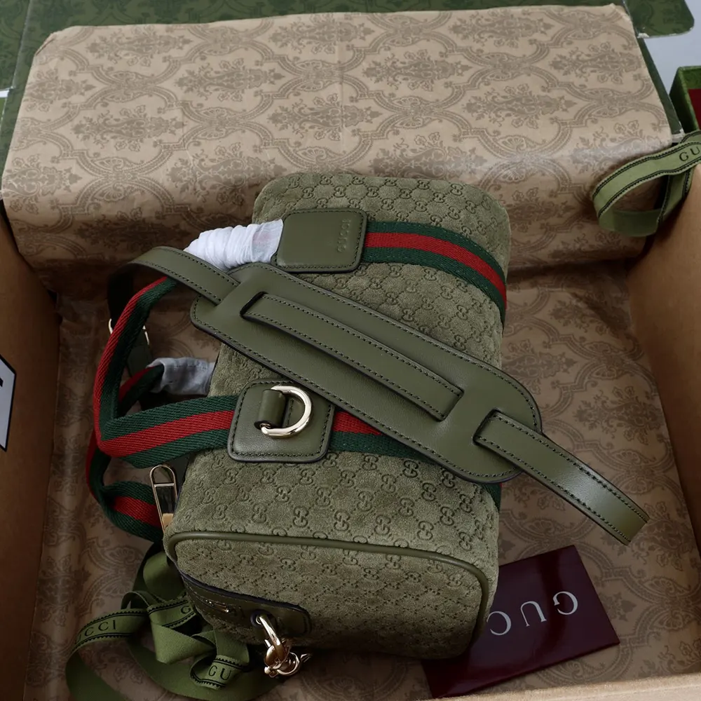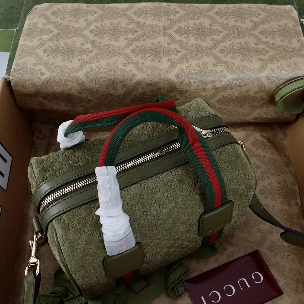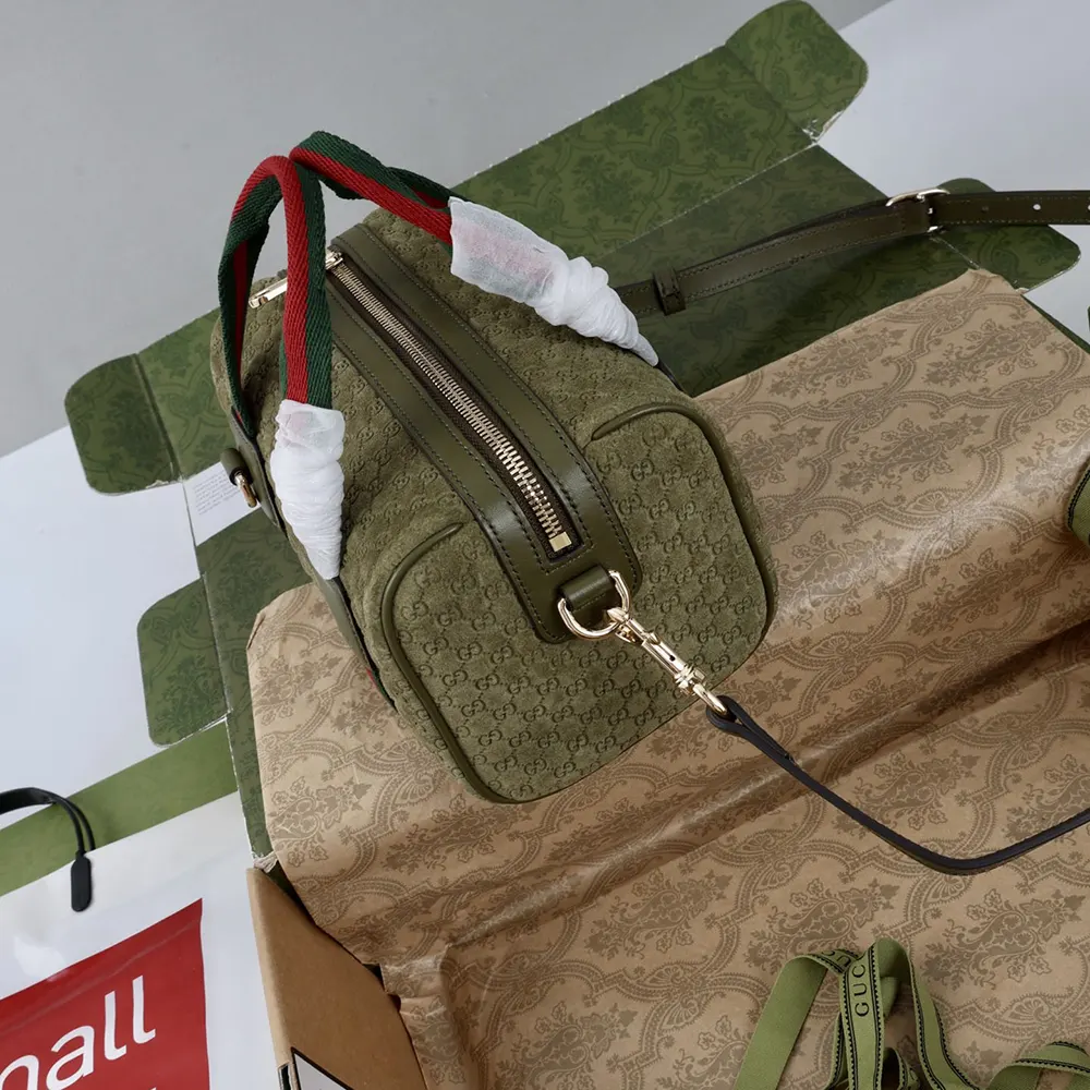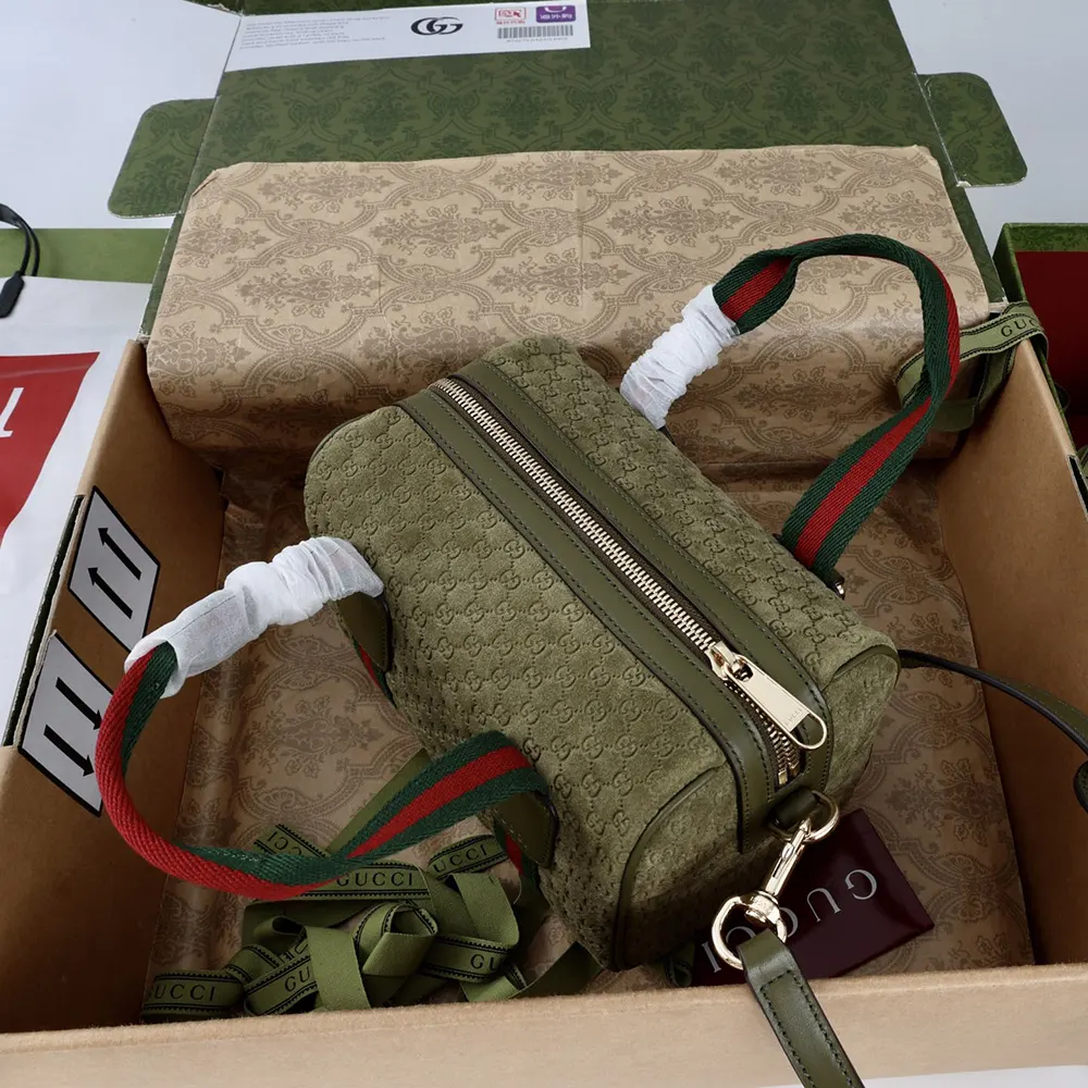- Inspired by the Gucci duffle silhouette, the Mini GG handbag continues to revisit the House’s codes and celebrated travel legacy with different materials.