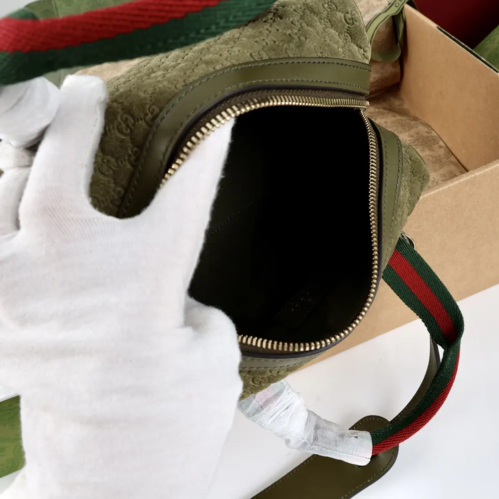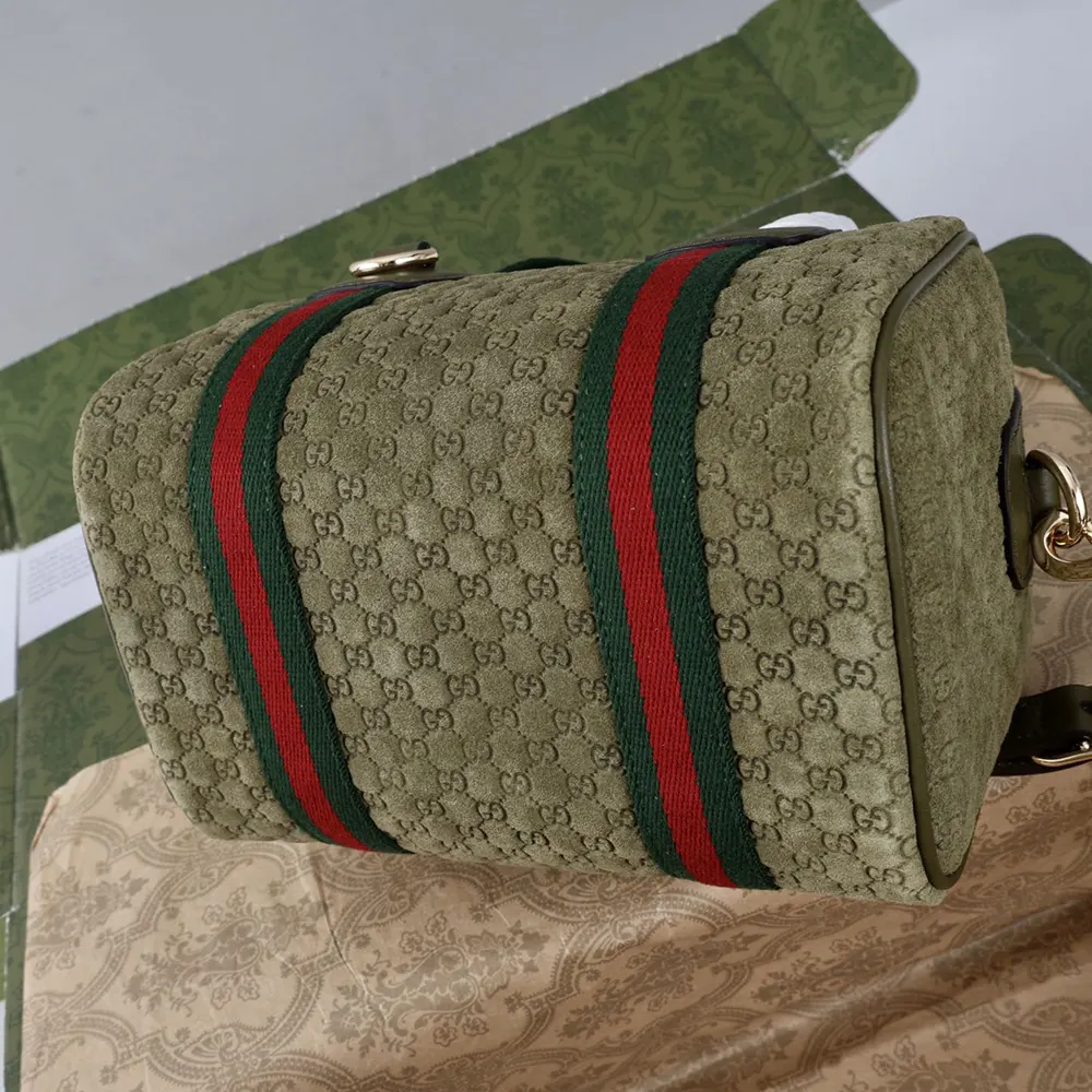 - This version is crafted in suede for an added touch of sophistication, which speaks to its effortless elegance while highlighting the signature GG motif.