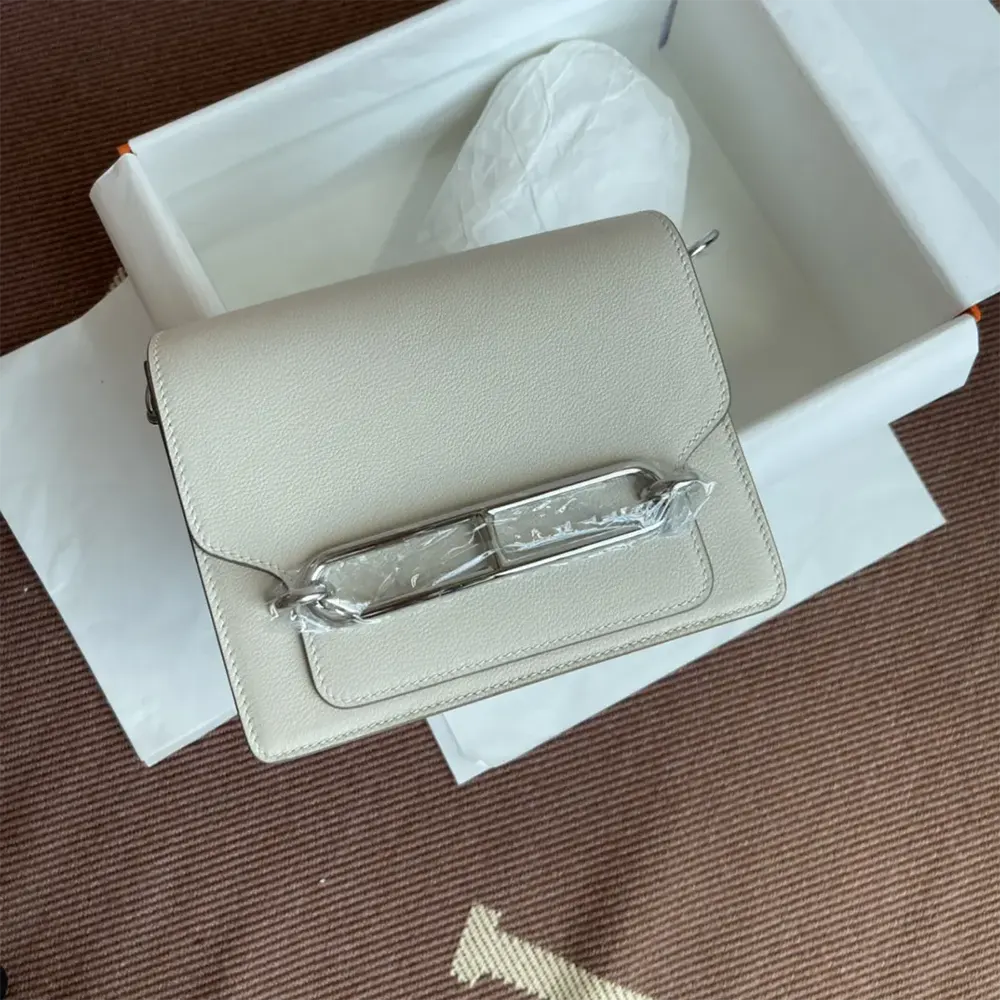 Hermes Women Roulis Mini Bag in Evergrain Calfskin-White/Silver