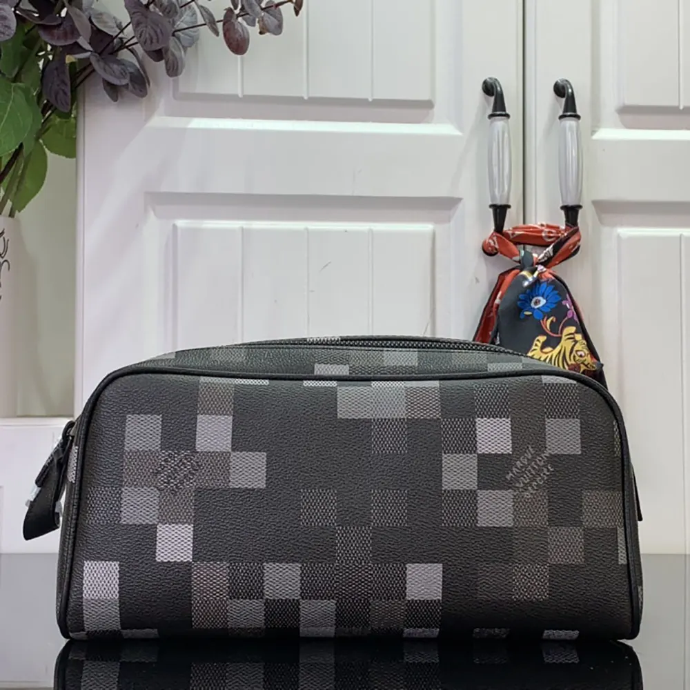 Louis Vuitton LV Unisex Dopp Kit Damoflage Black Coated Canvas M15109
