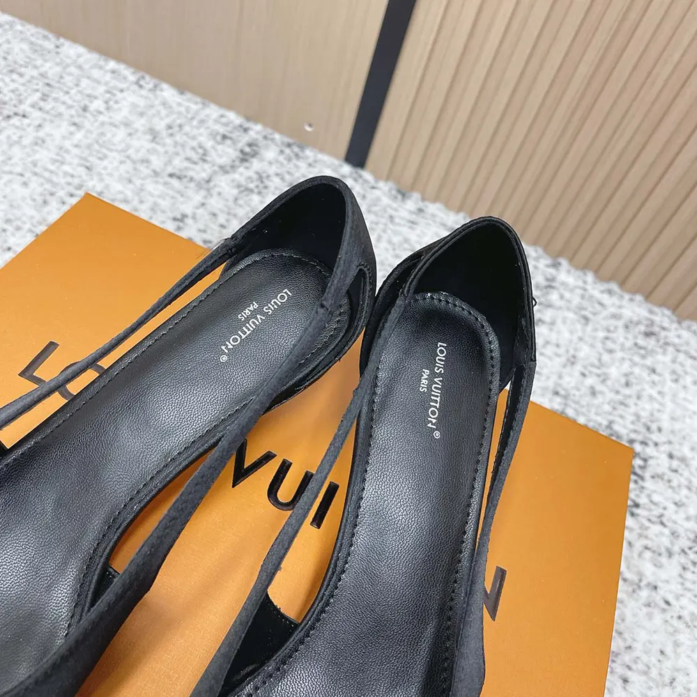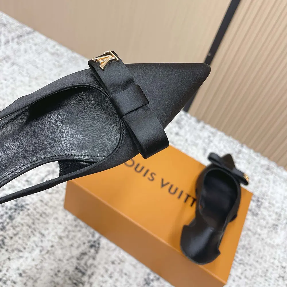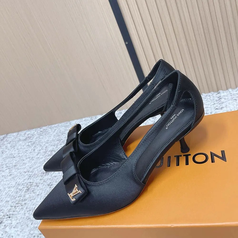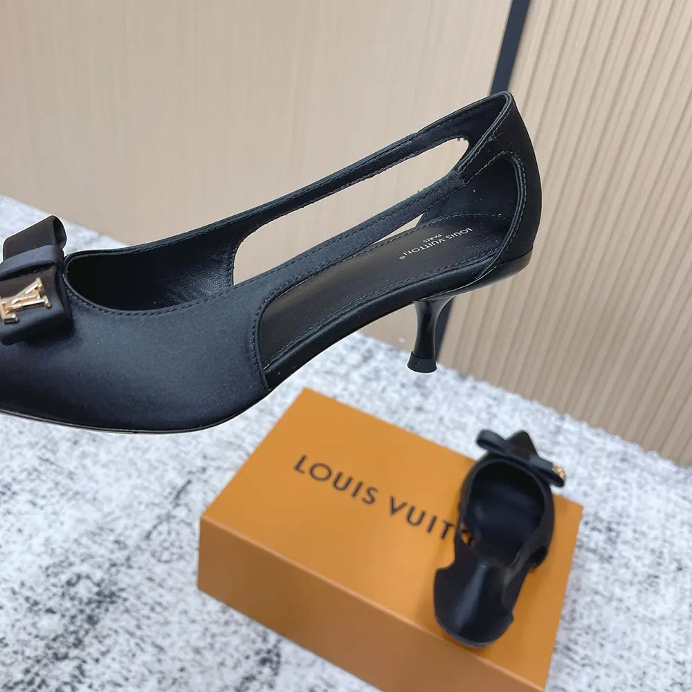 - The upper is distinguished by its cut-out sides, which subtly reveal the foot, and its flat knot detail on the front, which is signed with a gold-toned LV Initials stud.