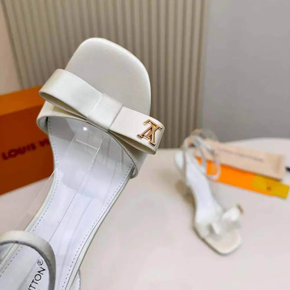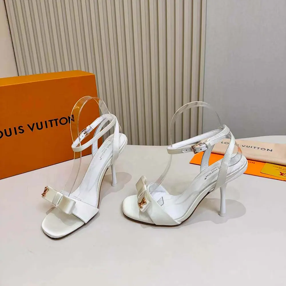 - This sophisticated, high-heeled style is characterized by the flat knot on its front strap, which is embellished with a gold-toned LV Initials stud.