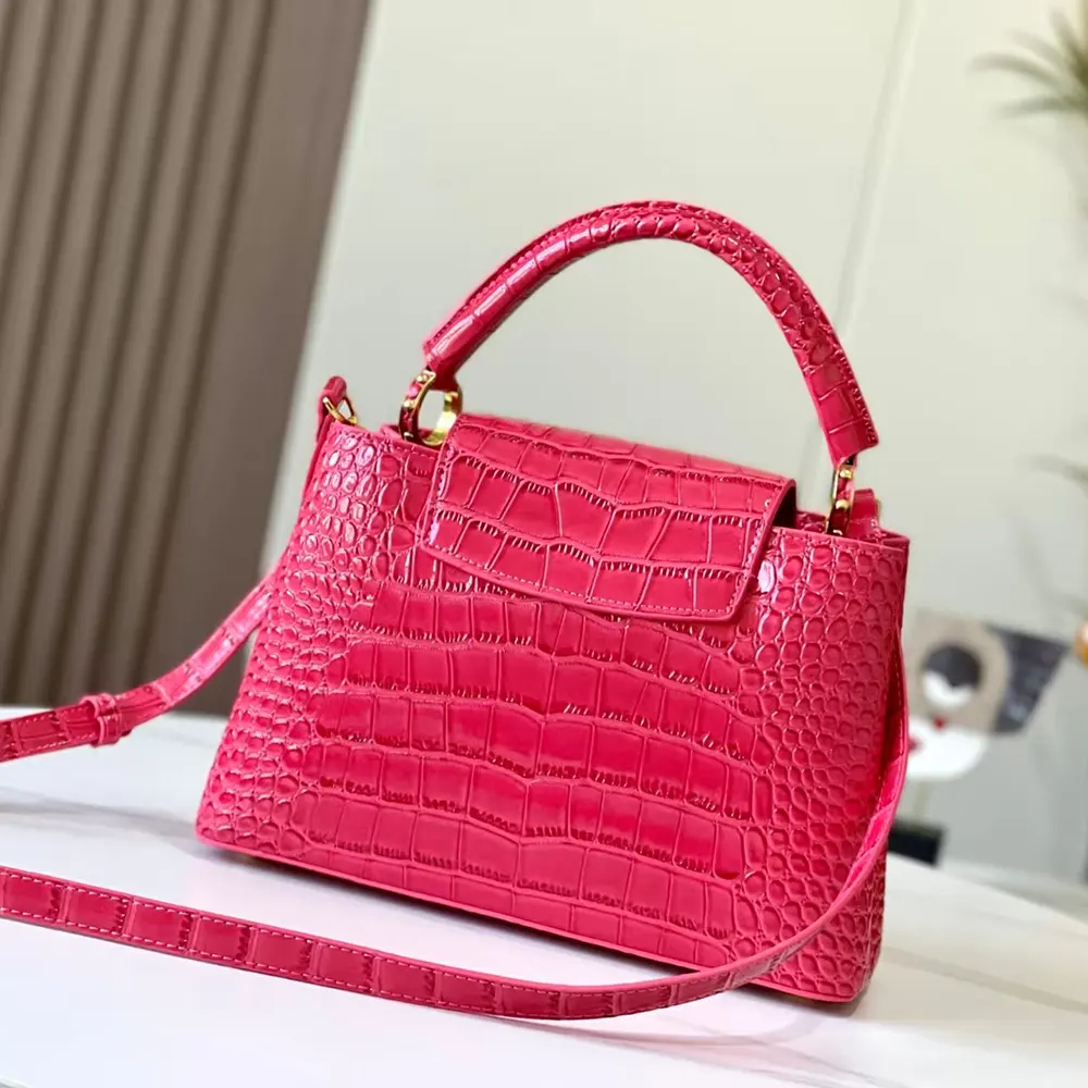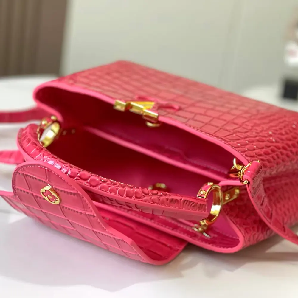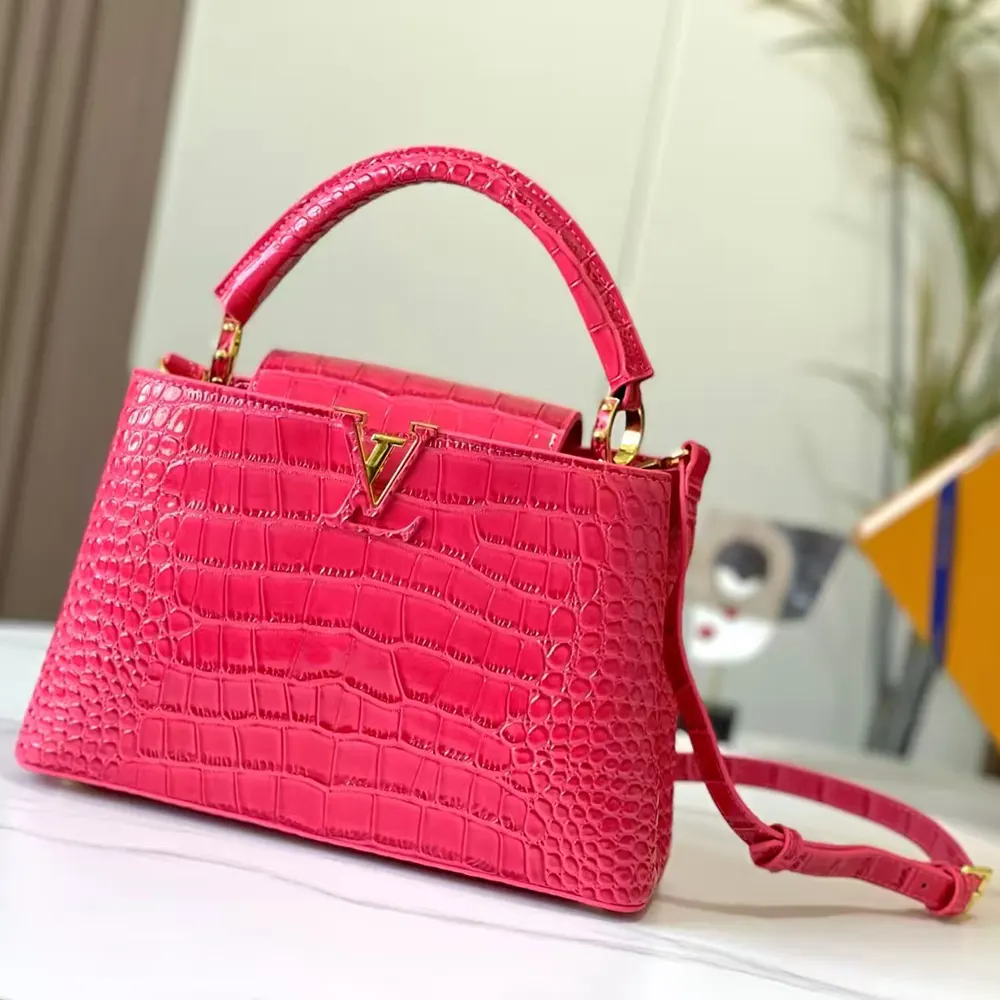 Louis Vuitton LV Women Capucines BB Handbag Pink Crocodilian Leather