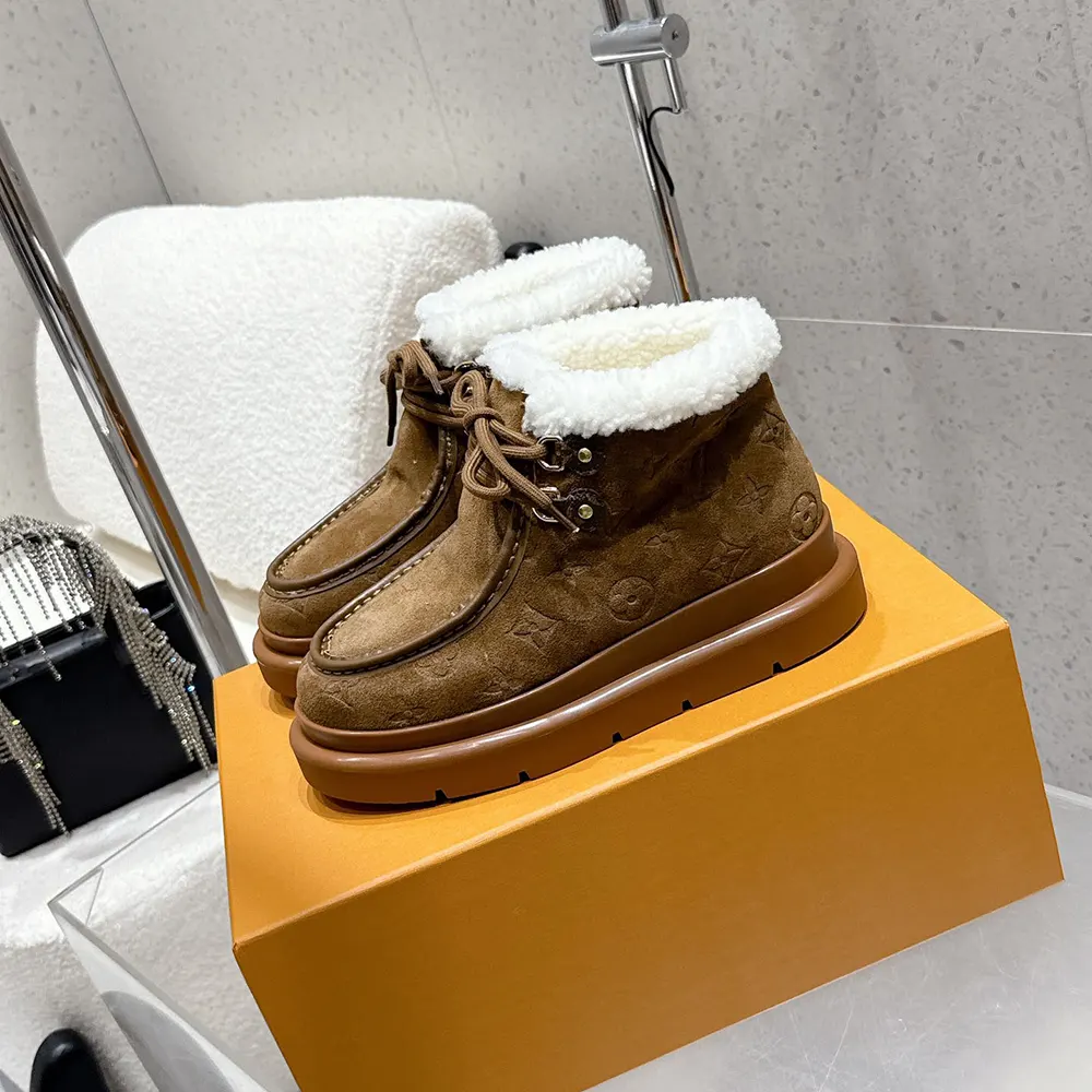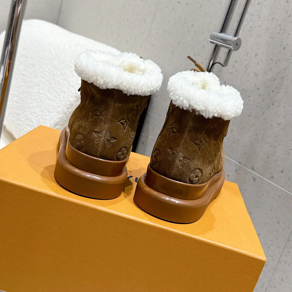 - It combines an upper in Monogram-debossed suede calf leather with a warm and fluffy shearling lining and a slip-resistant rubber outsole.