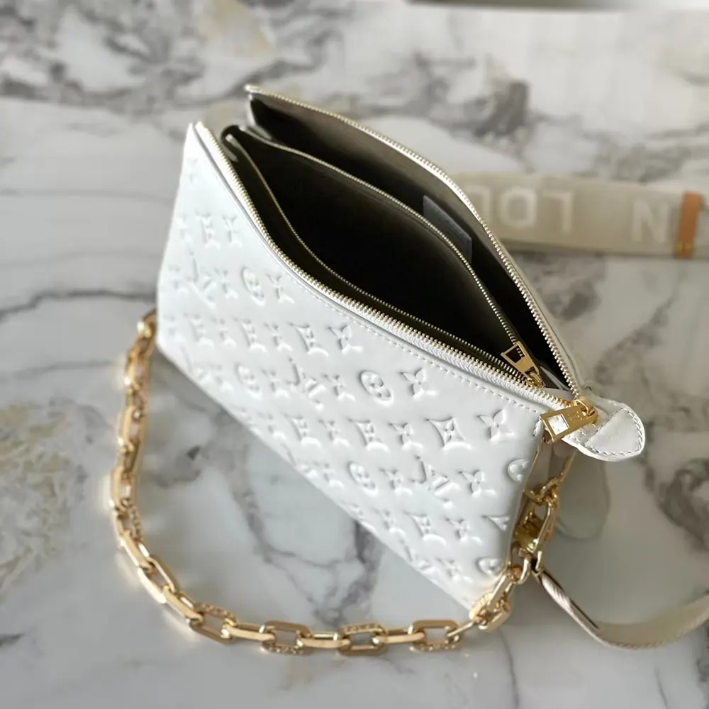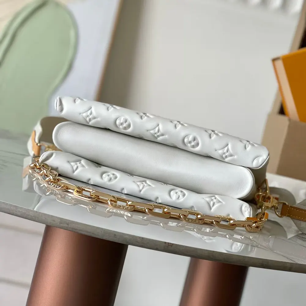 Louis Vuitton LV Women Coussin PM Handbag White Lambskin Cowhide Leather