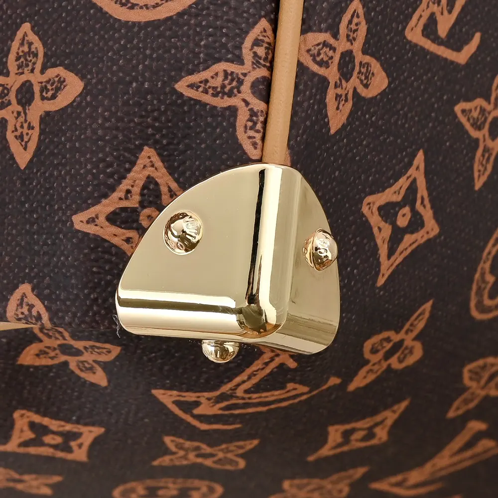- The gold-tone hardware, including reinforced corners and a padlock, adds a refined touch.