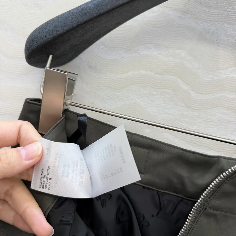 - Two trim patch pockets on the hips are embellished with metallic Monogram accents, while the waistband can be adjusted with a chic leather belt detail.