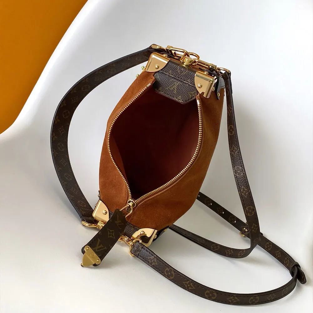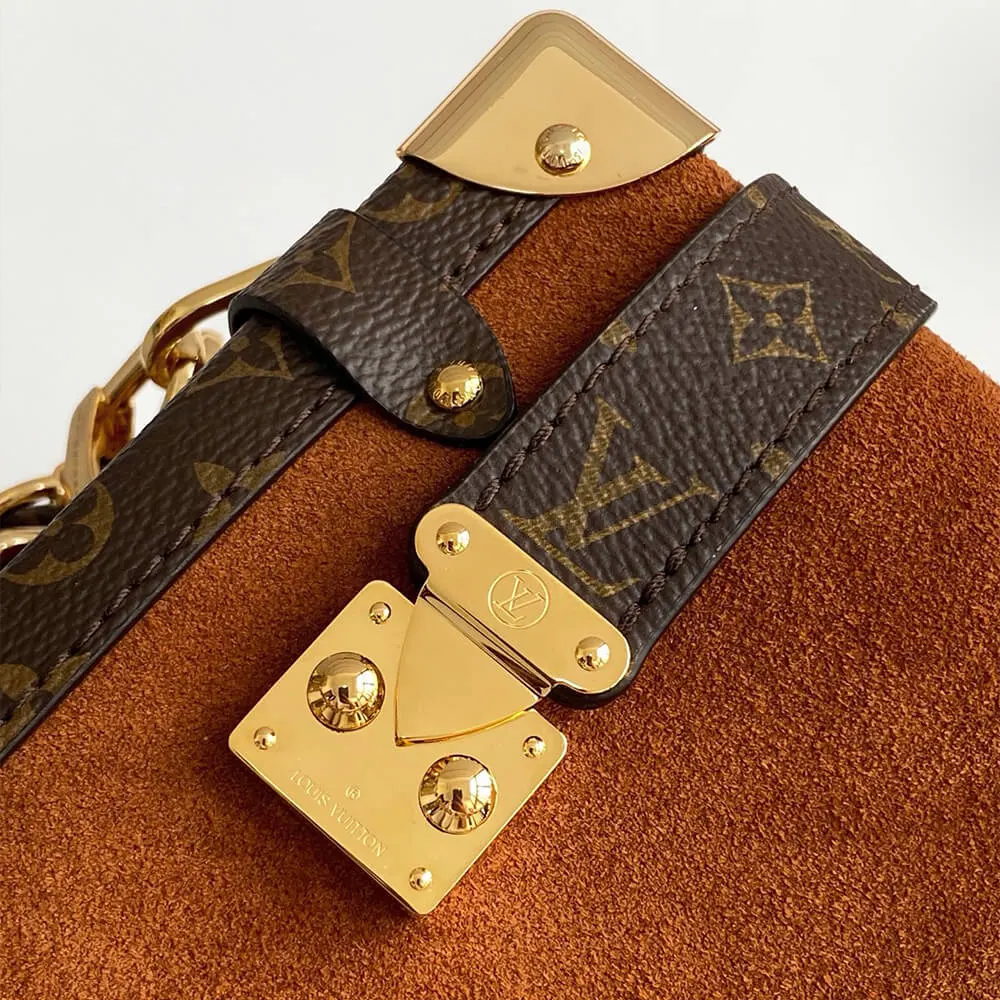 Louis Vuitton LV Women Side Trunk MM Suede Calfskin Leather-Tan M15072