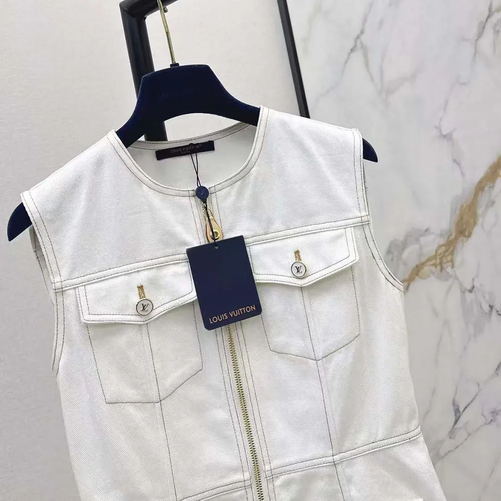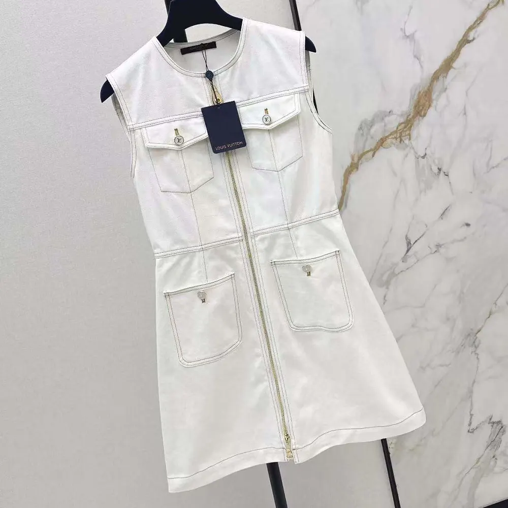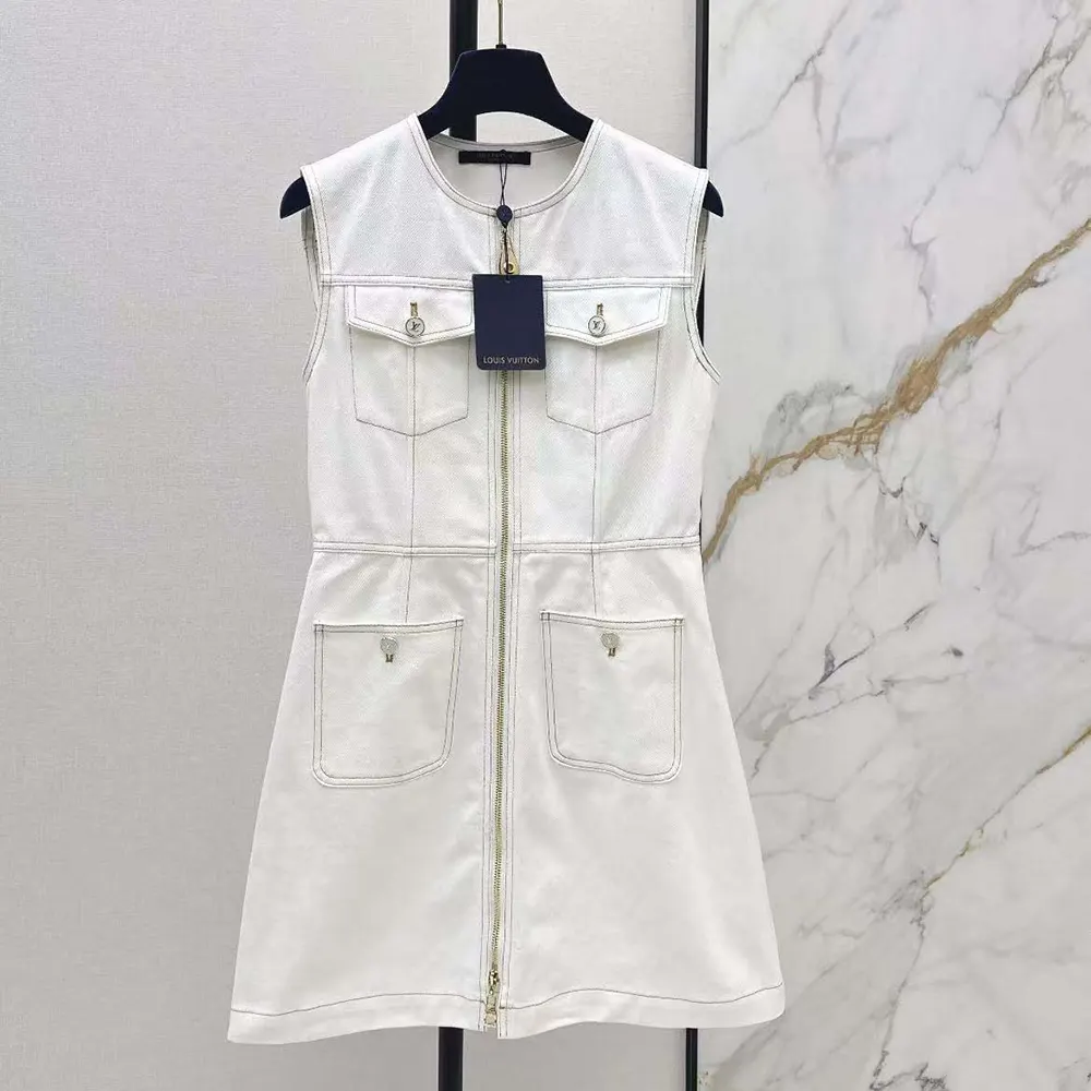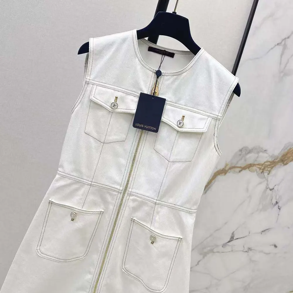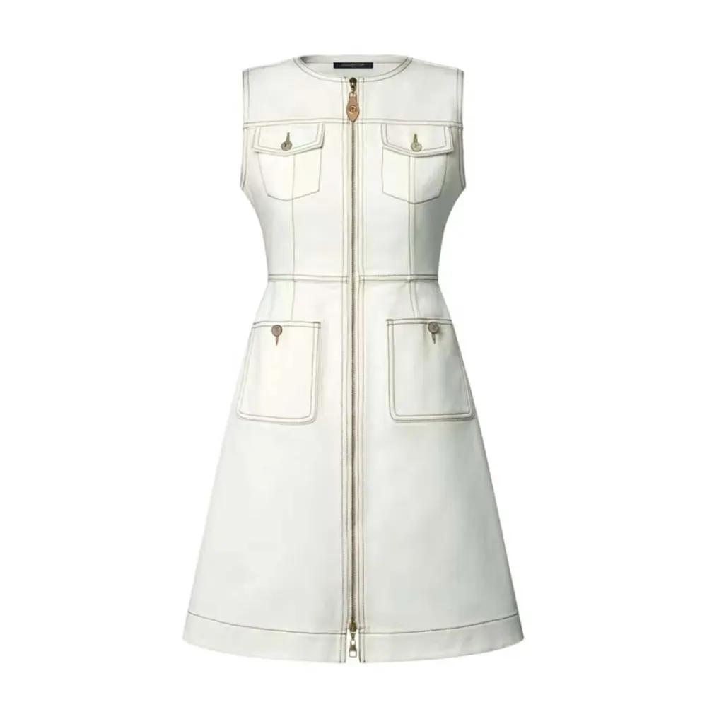 Louis Vuitton Women Contrast Stitch Utility Dress-White 1AJYPI