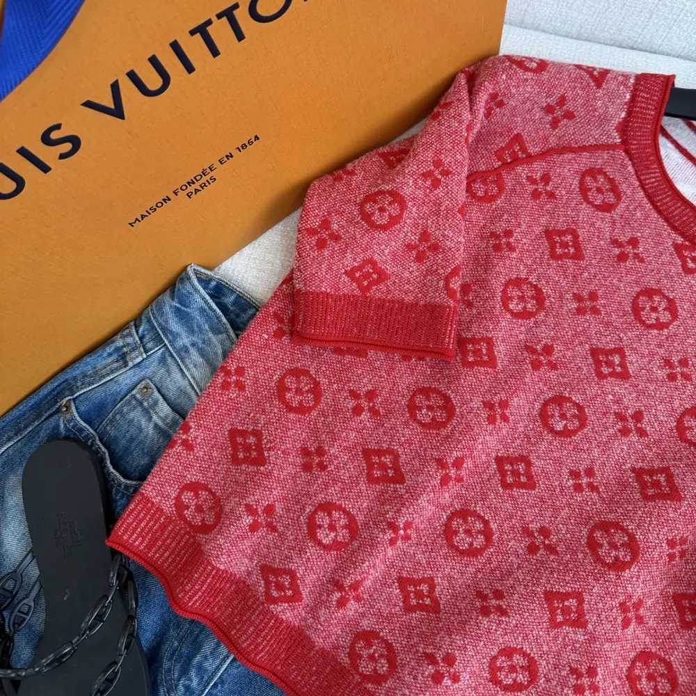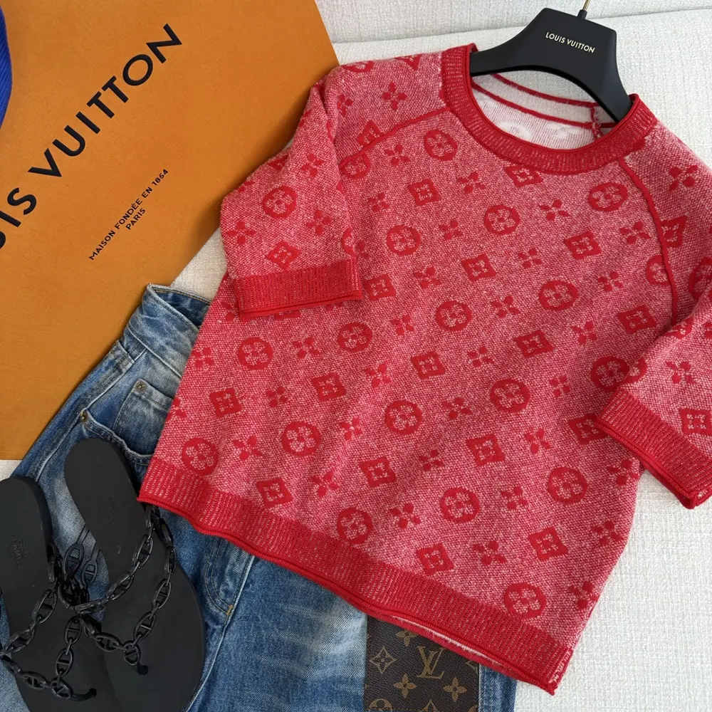Louis Vuitton Women Monogram Tweed-Effect Knit Top-Bright Red 1AJZ99