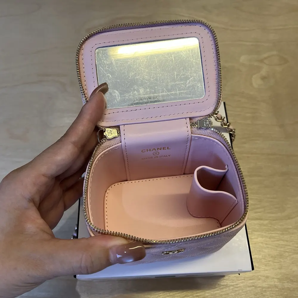 Bli först med att recensera ”Chanel Women Caviar Quilted Mini Vanity Case With Chain Light Pink” Avbryt svar