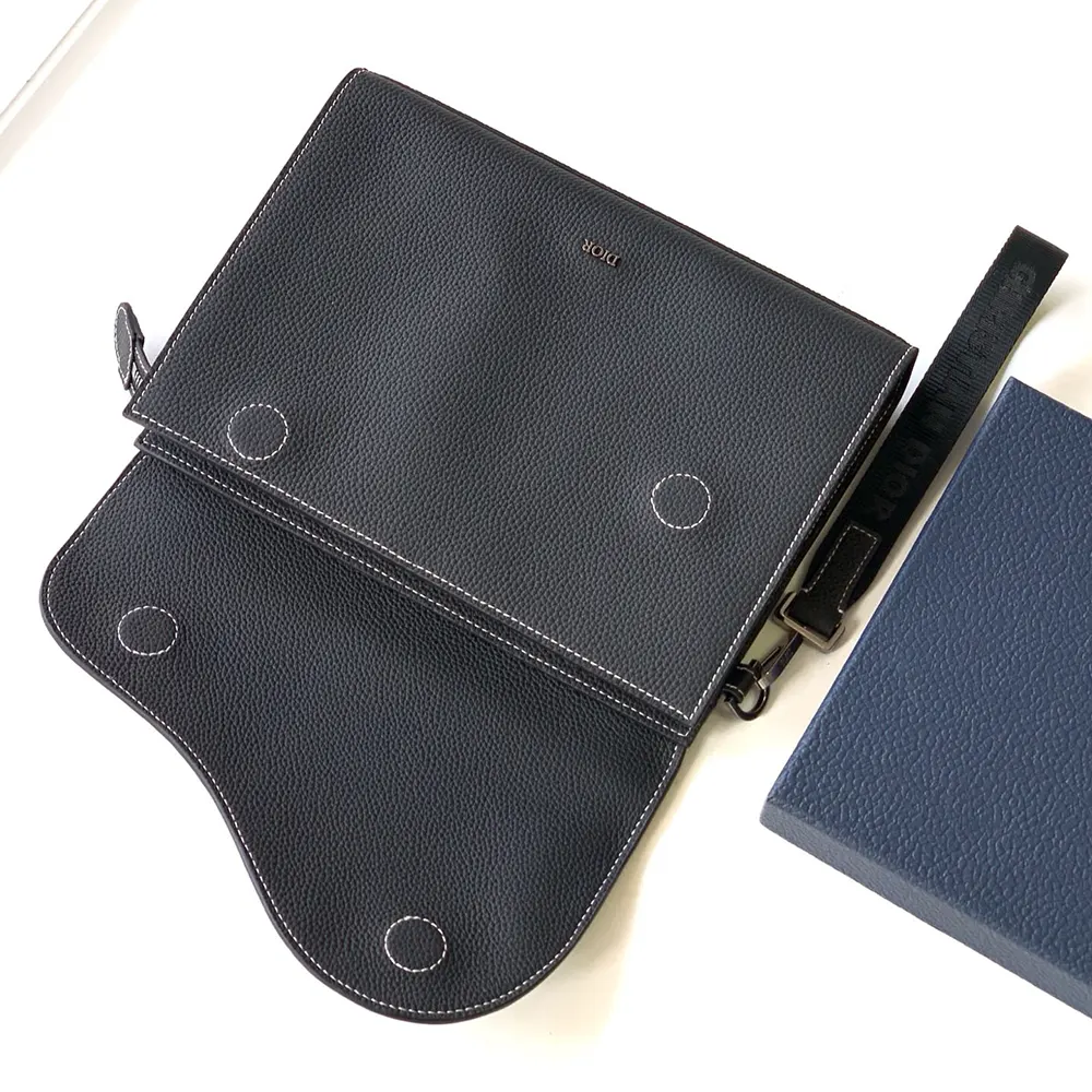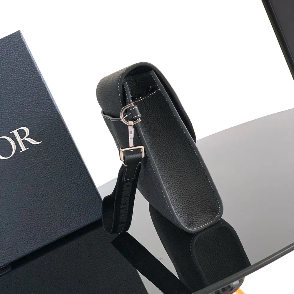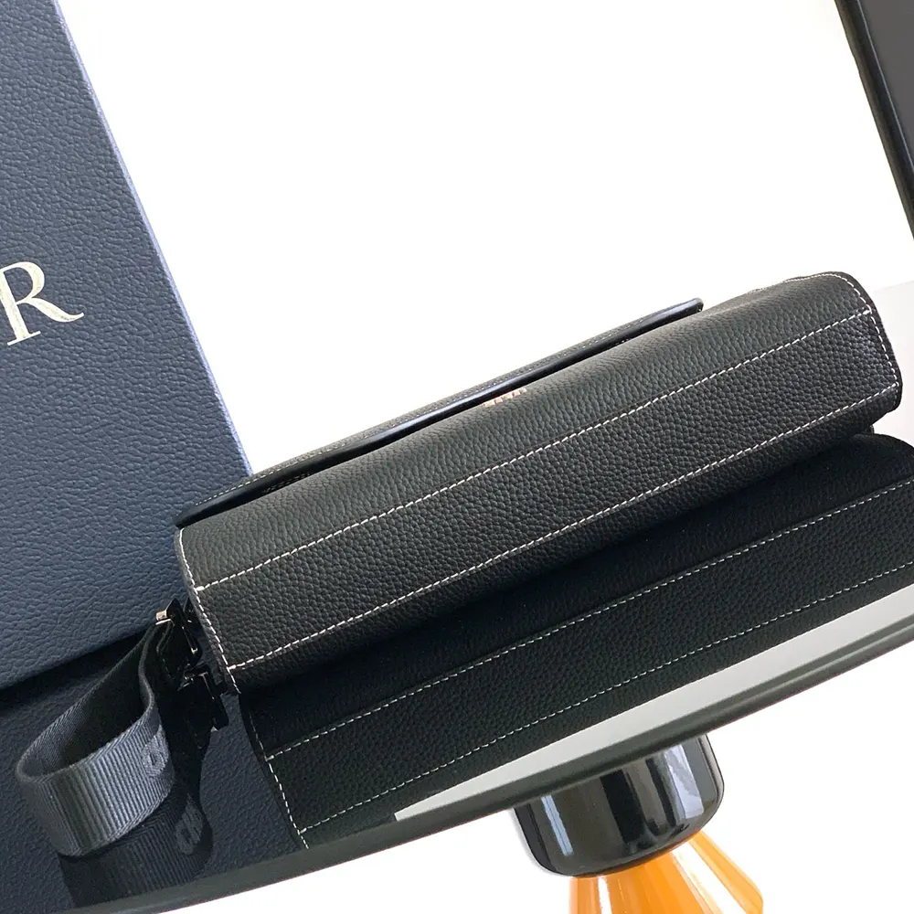 Dior Men Saddle A5 Triangle Pouch Black Grained Calfskin