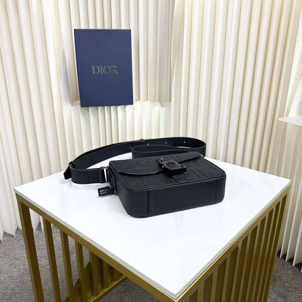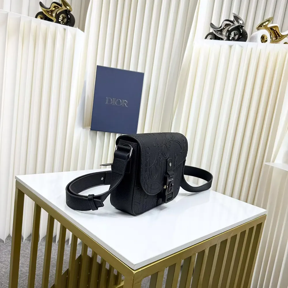 Dior Men Small Saddle Messenger Bag with Flap Black Dior Gravity Leather
