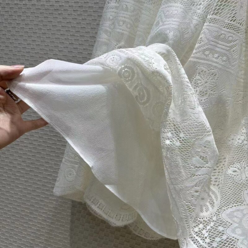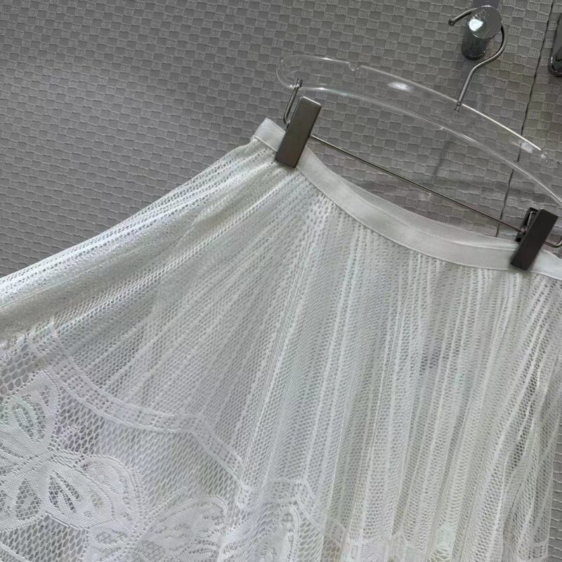 Dior Women CD Flared Mid-Length Skirt Ecru Technical Cotton Lace D-Lace Butterfly Motif