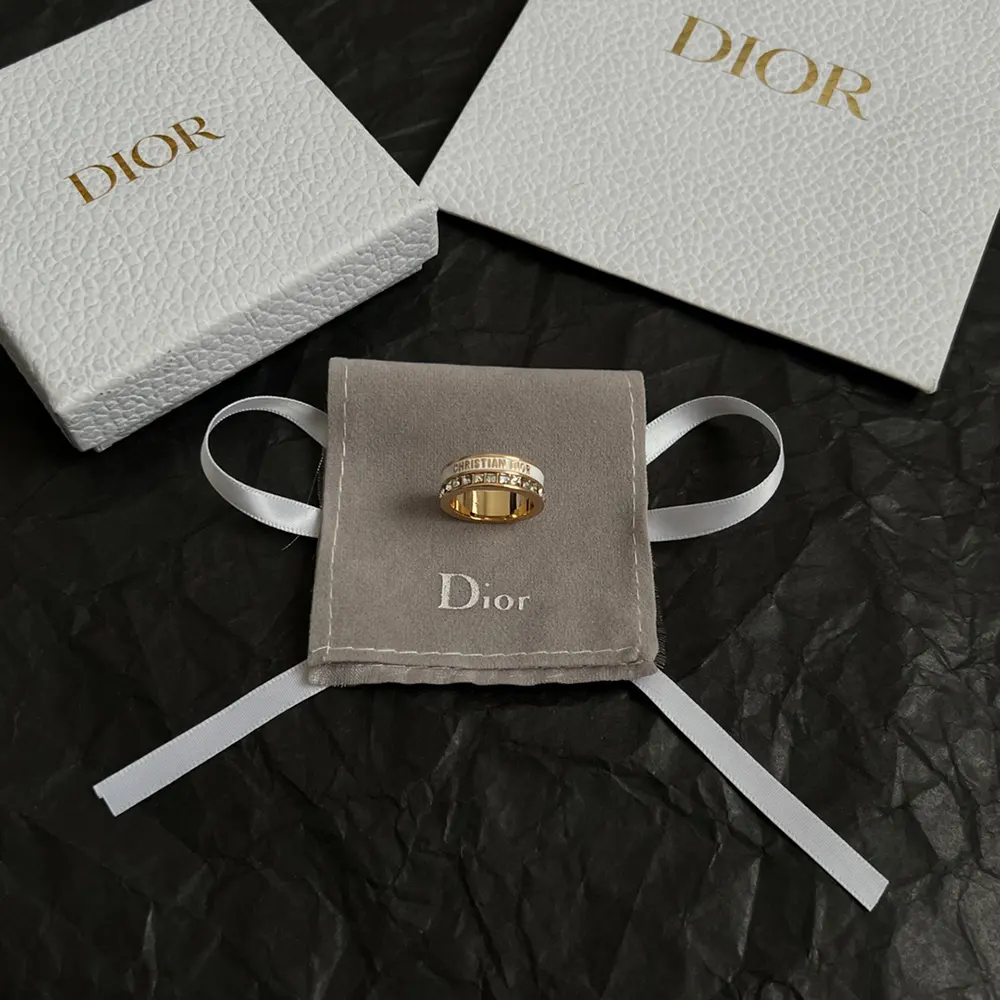 Dior Women Night Code Ring Gold-Finish Metal White Crystals and White Lacquer