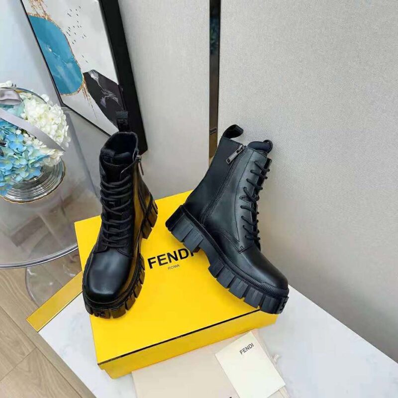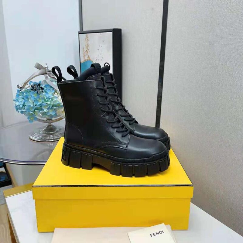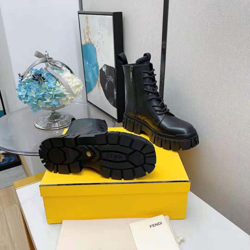 - Fendi Force lace-up ankle boots. Made of black leather.